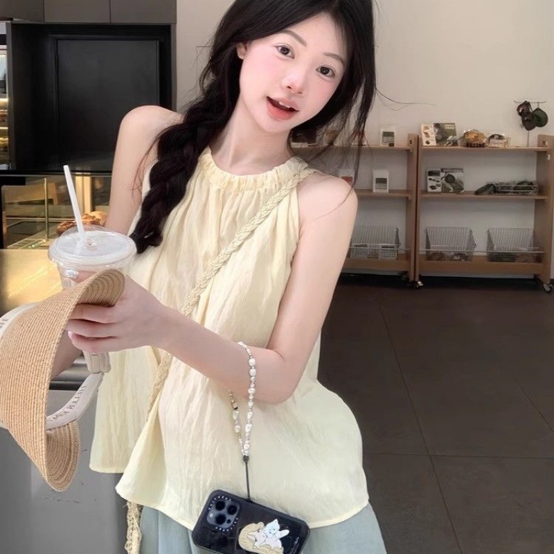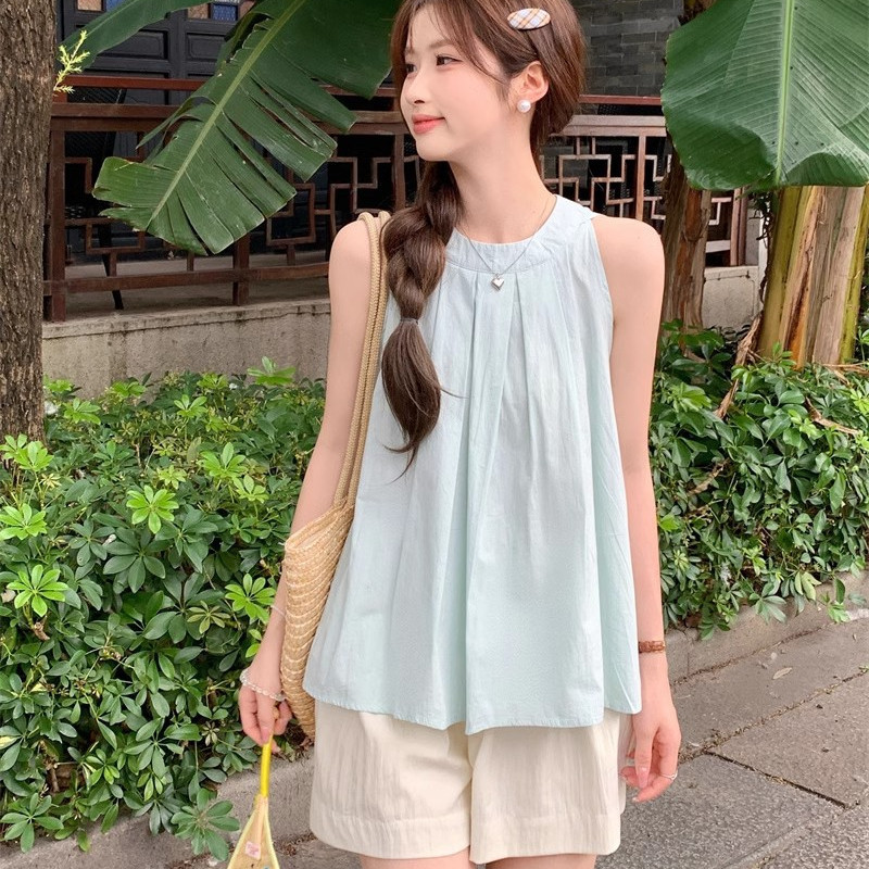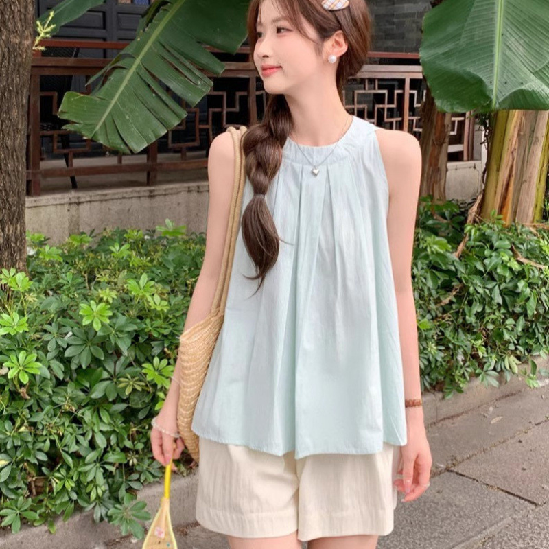 민트 맘보 스타일 달콤한 목 조끼 민소매 최고 여성 티셔츠 여름 디자인 틈새 인형 셔츠스토어 가기