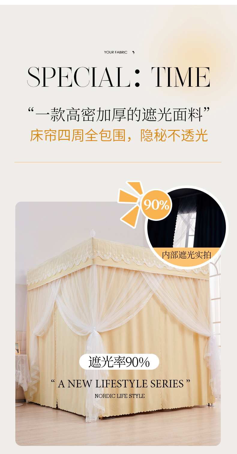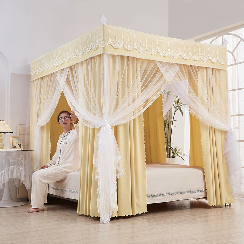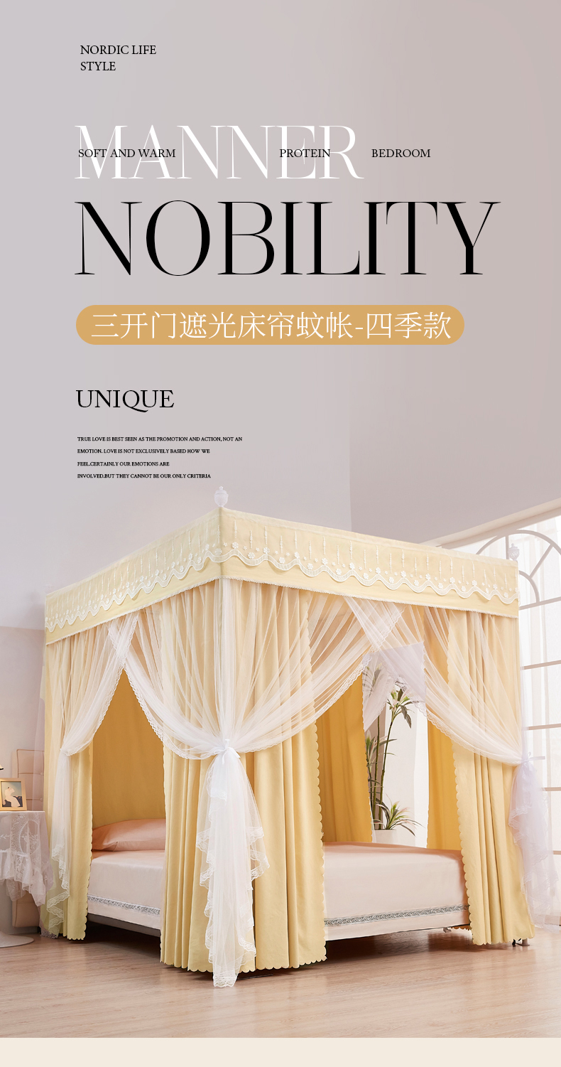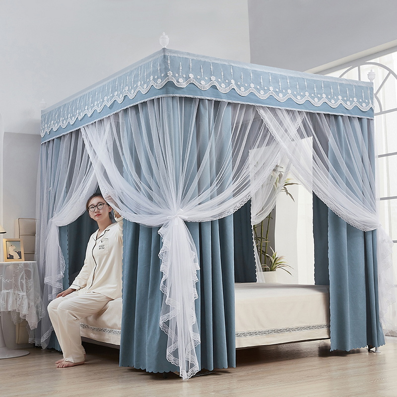 침대 커튼 홈 침실 1.5m 3 도어 바닥부터 천장까지 모기장 1.8m 궁전 공주 스타일 차광 침대 커튼으로 바람을 차단하고 따뜻하게 유지스토어 가기