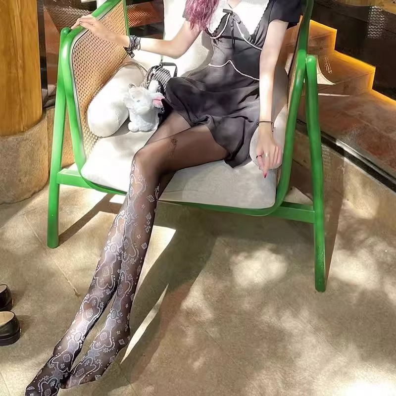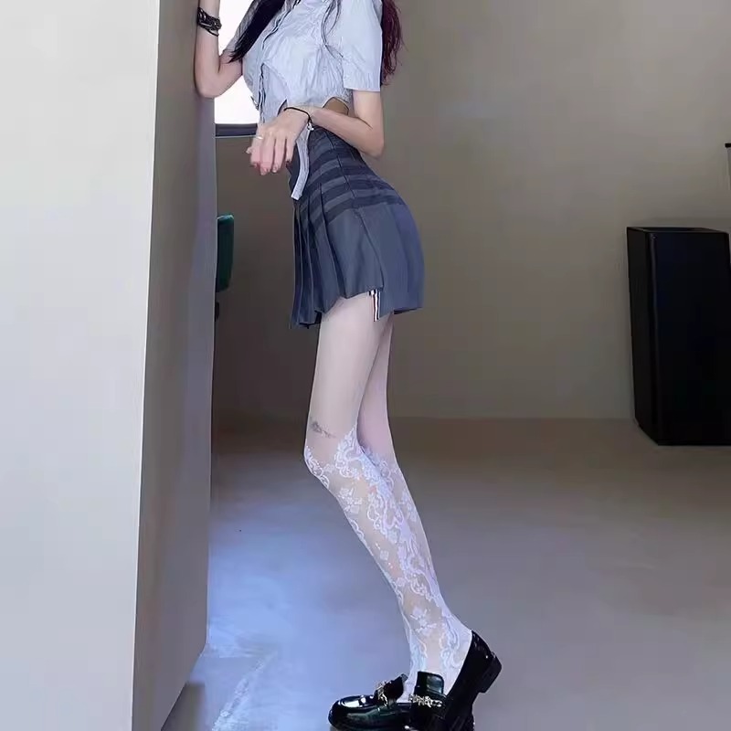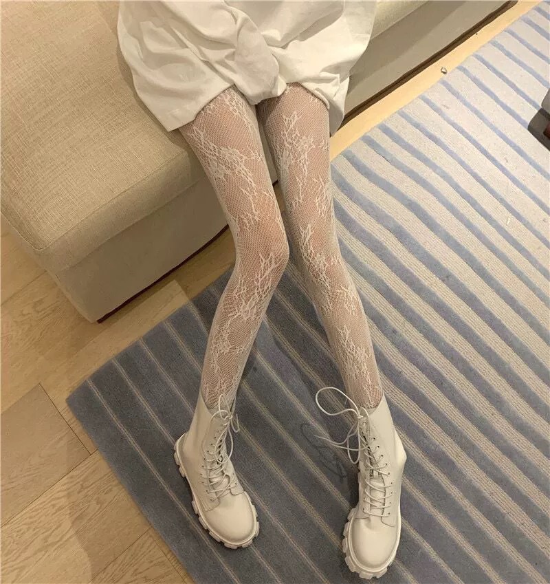 여성을위한 섹시한 흰색 복고풍 패턴 스타킹 얇은 패션 종아리 자카드 팬티 스타킹 레이스 순수한 욕망 양말