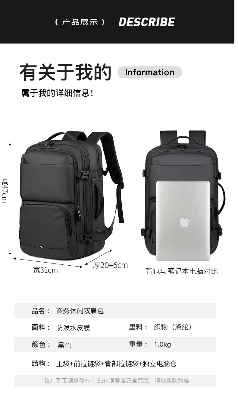 2025 새로운 컴퓨터 가방 대용량 여행 방수 경량 휴대용 야외 등반 남성 비즈니스 배낭스토어 가기