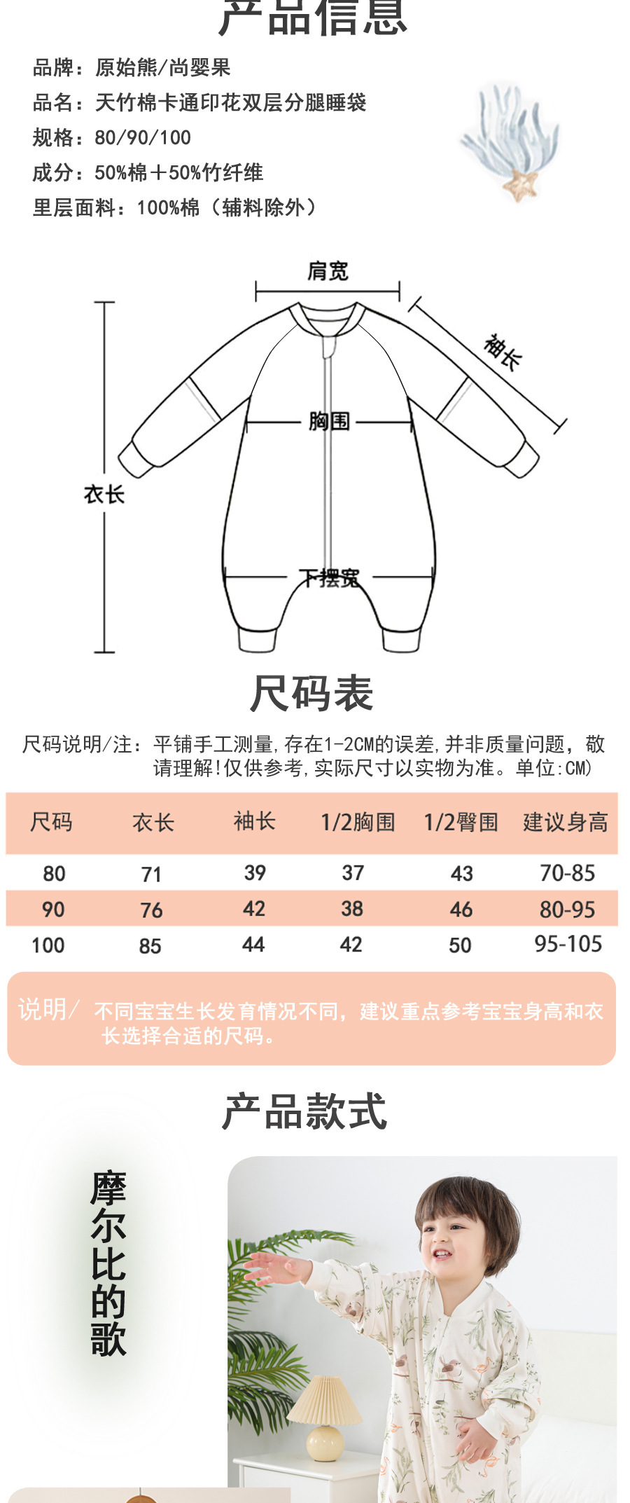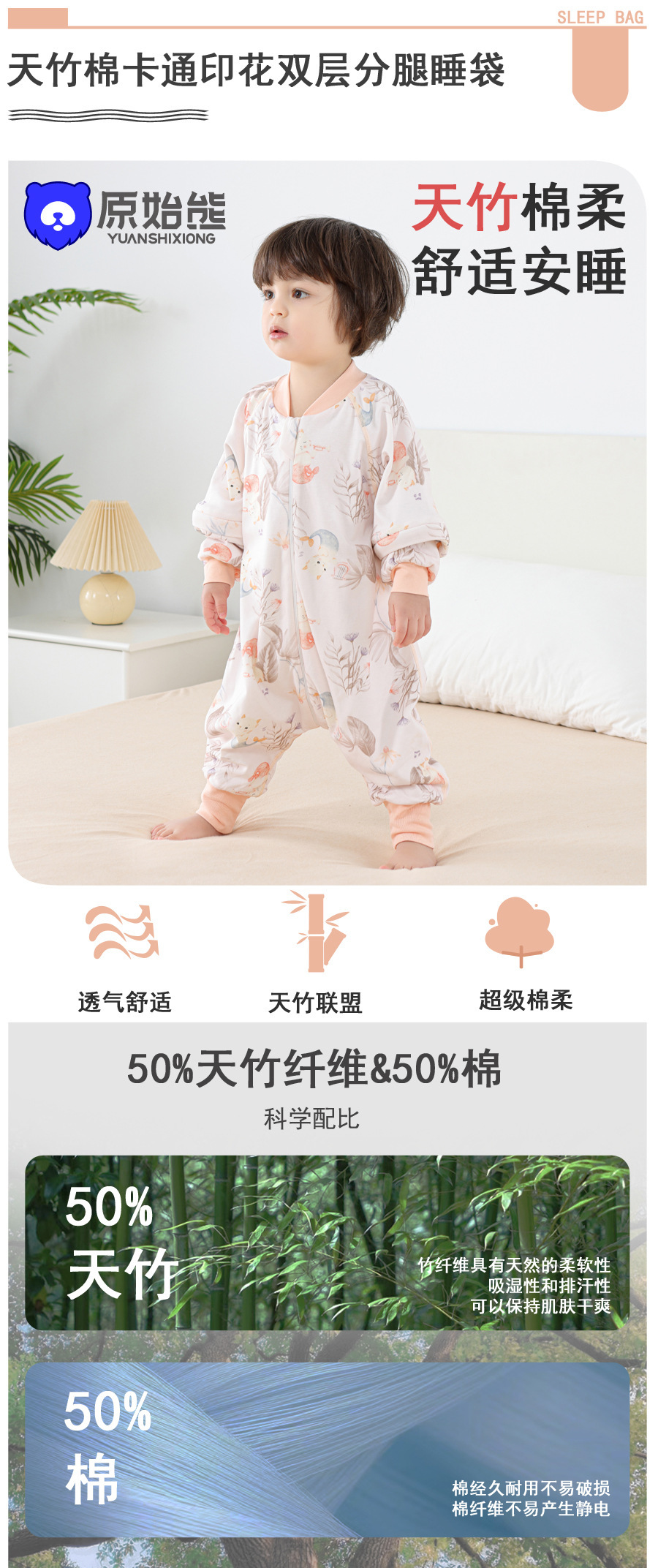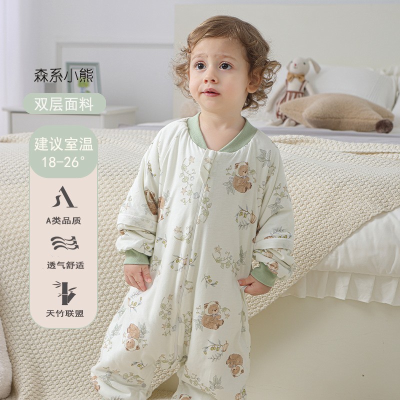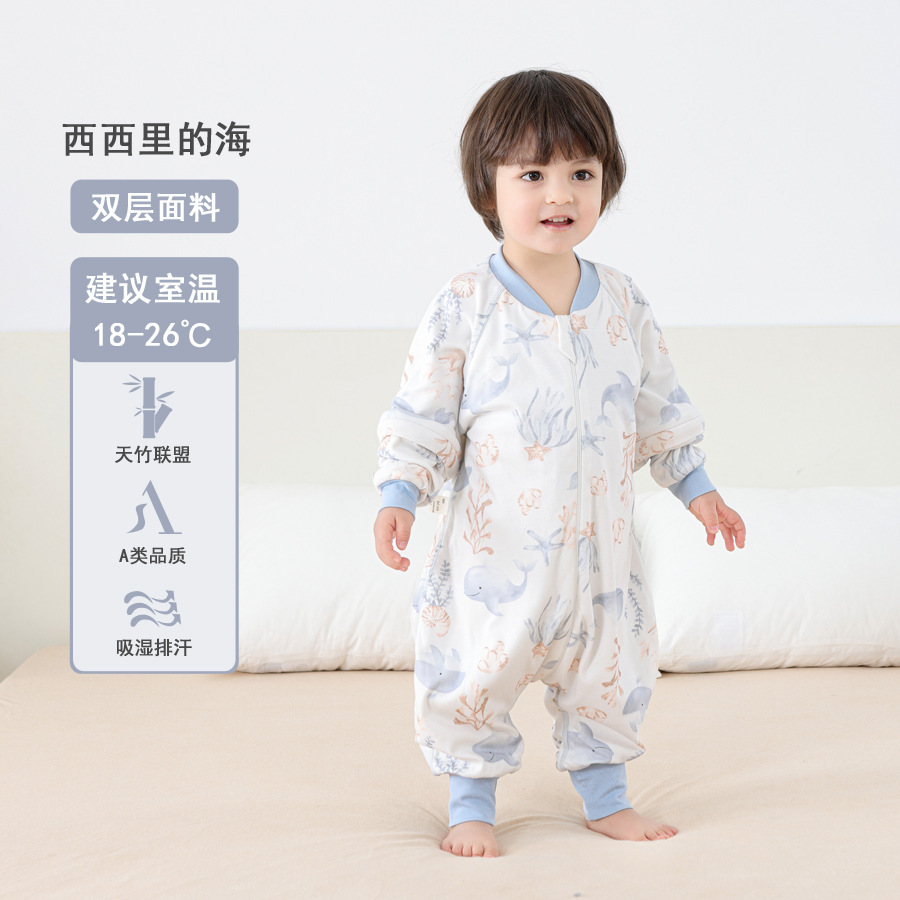 아기 슬리핑 백 봄과 여름 대나무 섬유 분할 다리 잠옷 킥 방지 조용한 사계절 유니버설 어린이 아기 더블 천 슬리핑 백스토어 가기