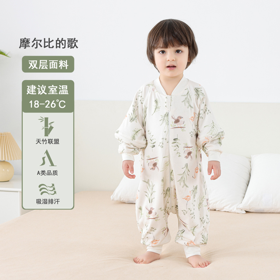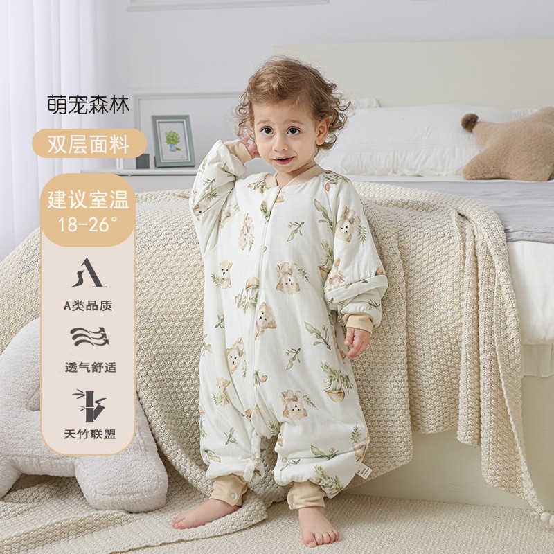 아기 슬리핑 백 봄과 여름 대나무 섬유 분할 다리 잠옷 킥 방지 조용한 사계절 유니버설 어린이 아기 더블 천 슬리핑 백