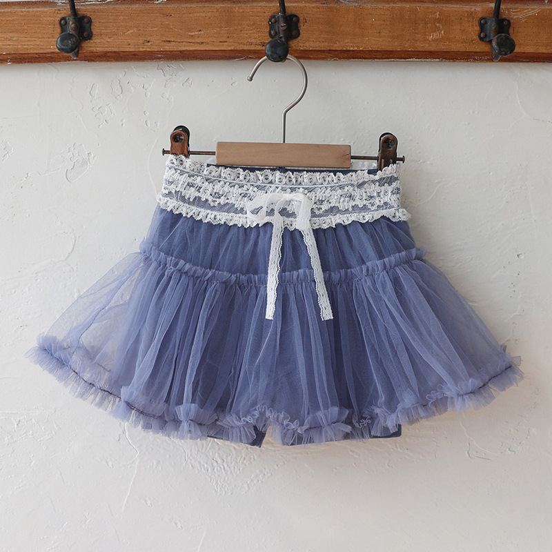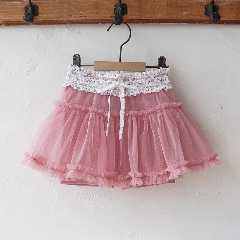 2025 여름 딸기 샤먼 한국 어린이 소녀의 아름다운 레이스 바느질 메쉬 공주 스커트 바지