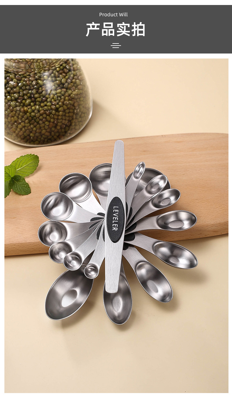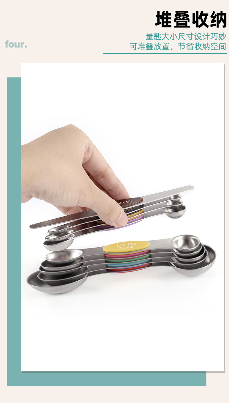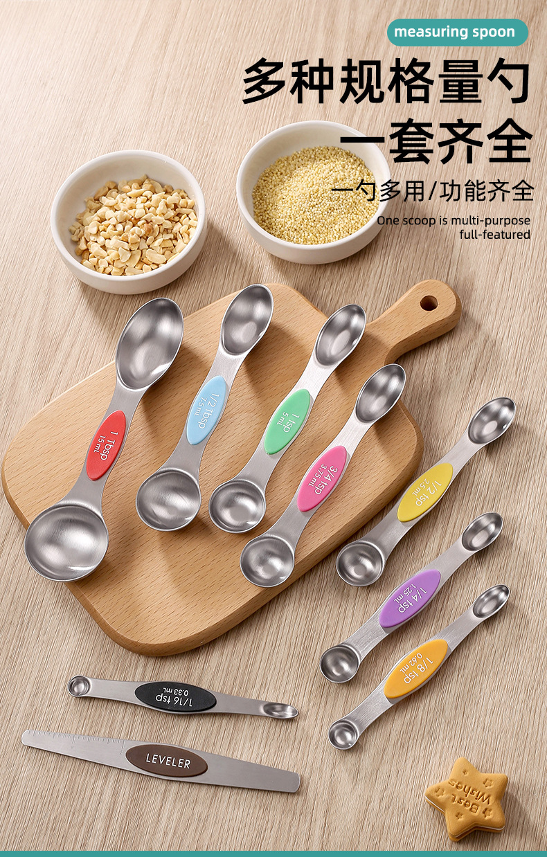 430 스테인레스 스틸 마그네틱 양면 측정 스푼 측정 스푼 8/9/10 조각 세트 스케일 조미료 다목적 도구스토어 가기