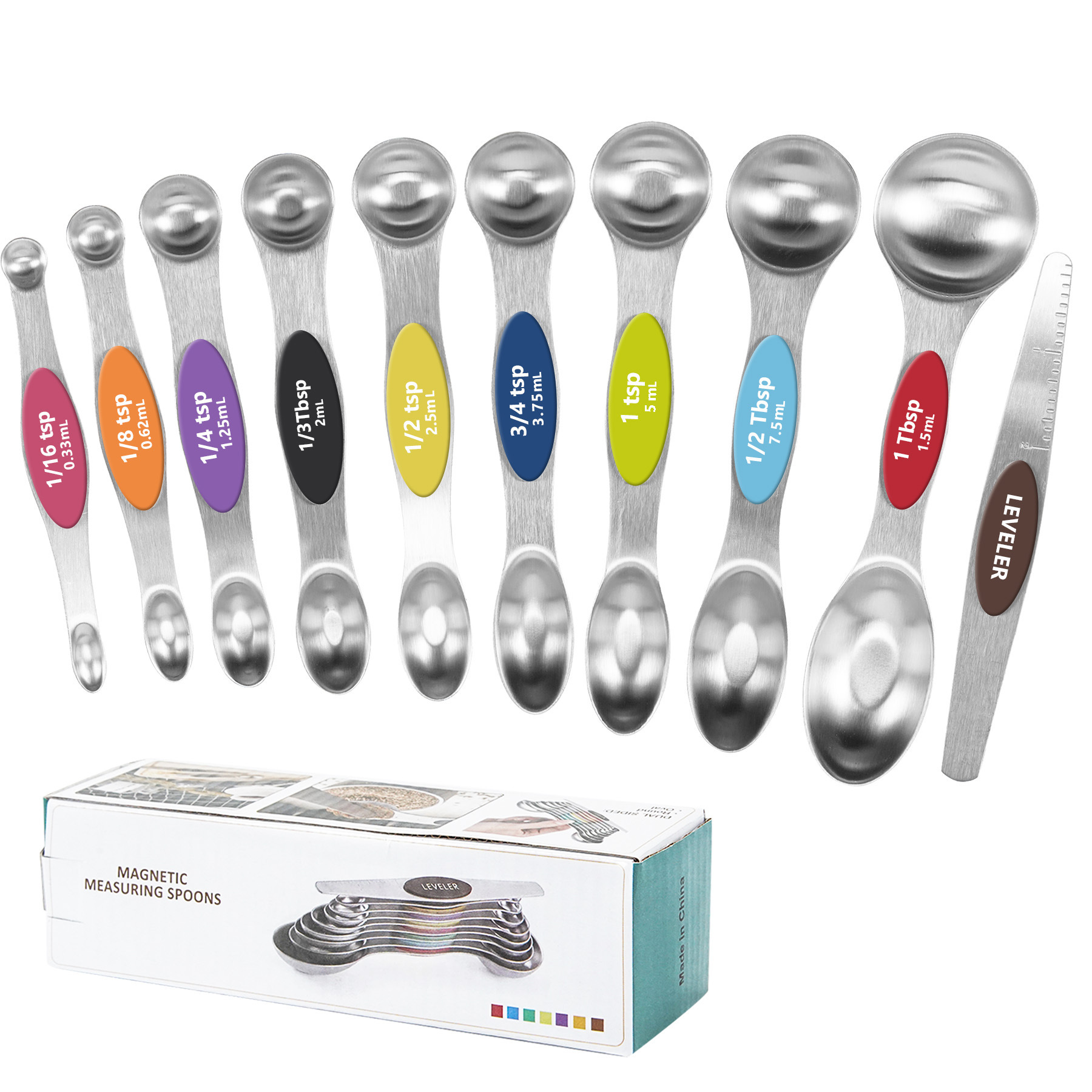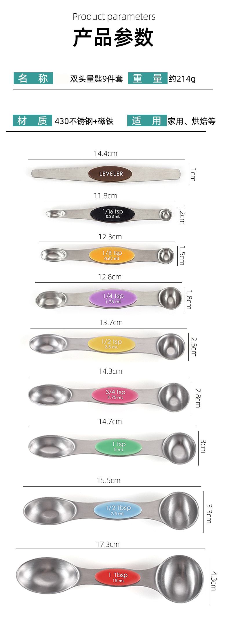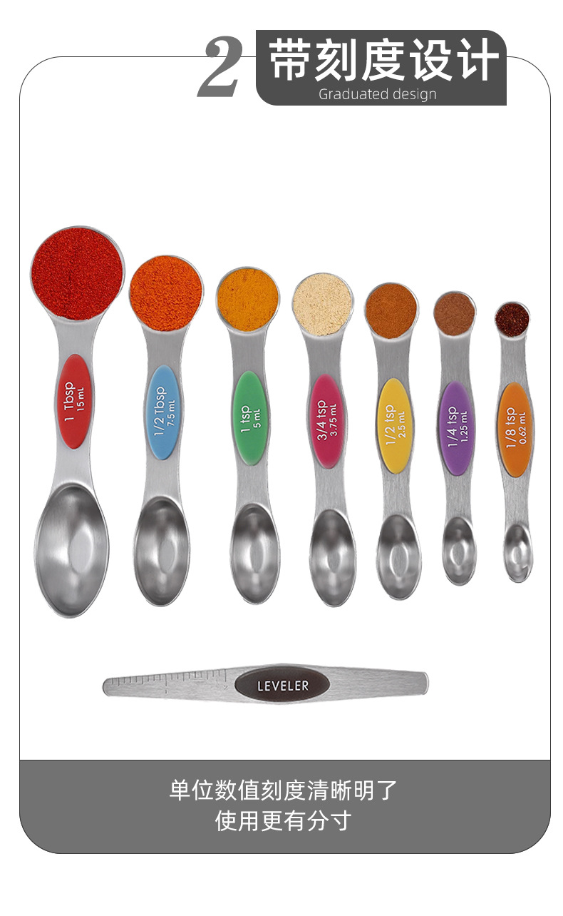 430 스테인레스 스틸 마그네틱 양면 측정 스푼 측정 스푼 8/9/10 조각 세트 스케일 조미료 다목적 도구