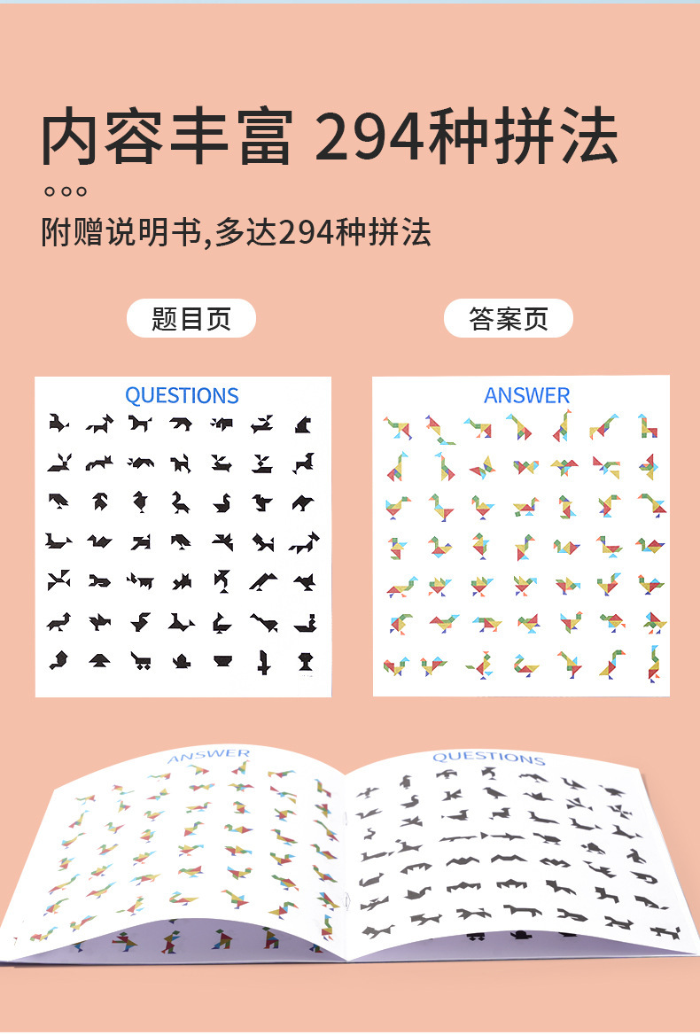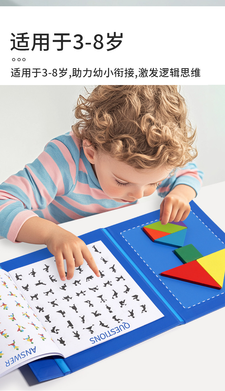 국경 간 어린이 퍼즐 조기 교육 Tangram 나무 장난감 유치원 자기 퍼즐 기하학적 모양 퍼즐 교육 원조스토어 가기