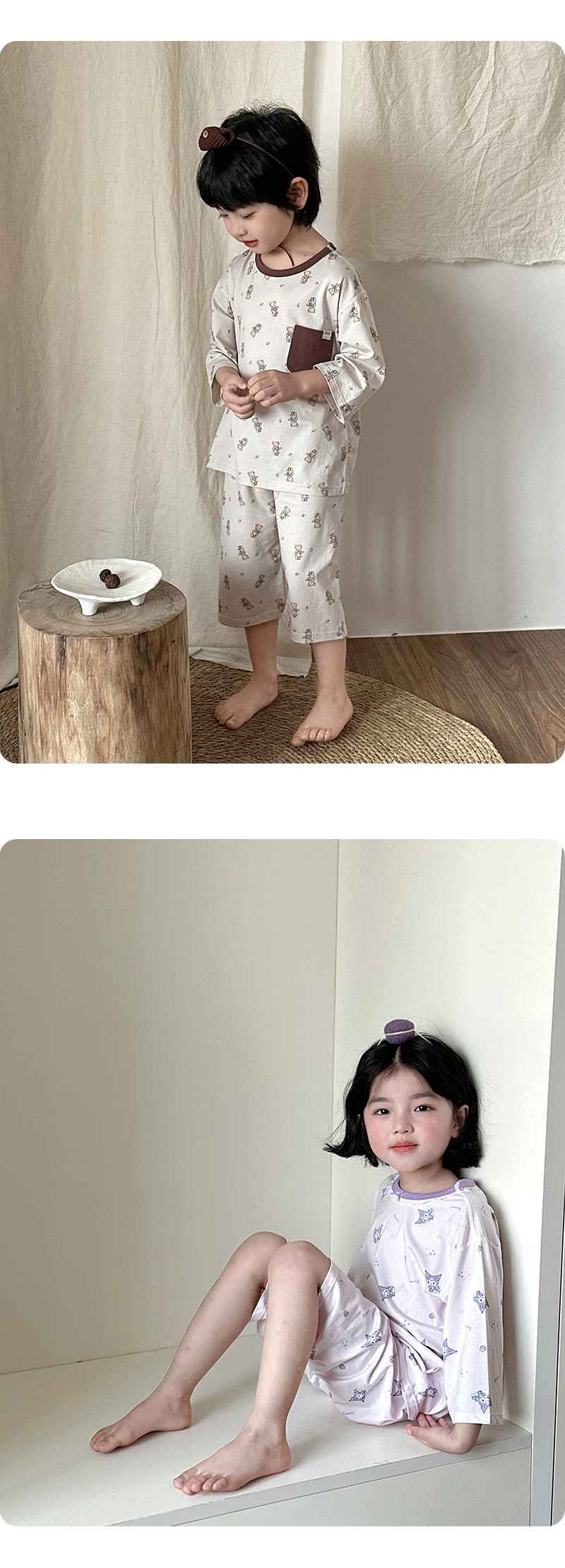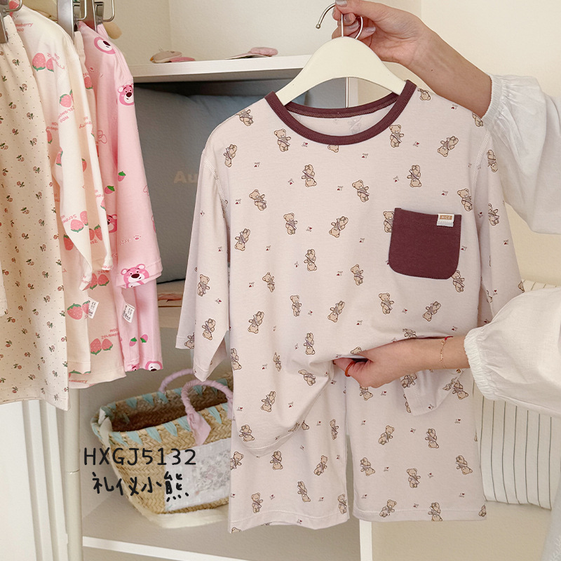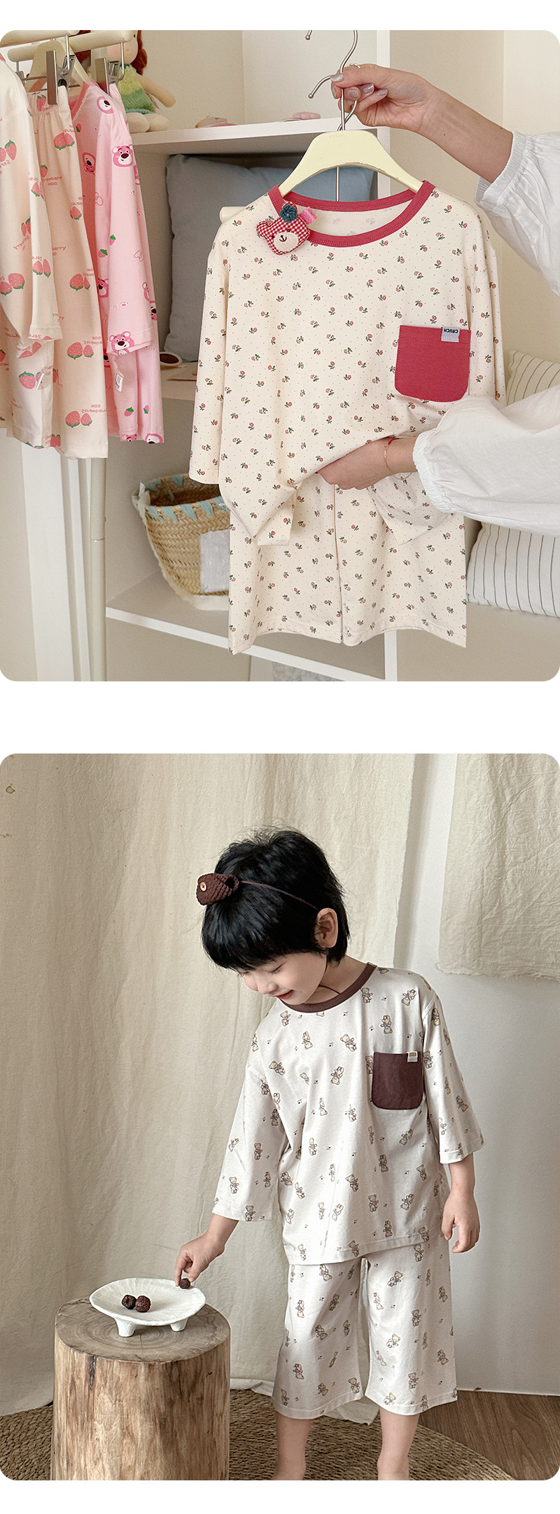 어린이 Lyocell 파자마 세트 클래스 A 홈 옷 7 소매 에어컨 옷 얇은 아이스 실크 미디어와 대형 어린이 여름스토어 가기