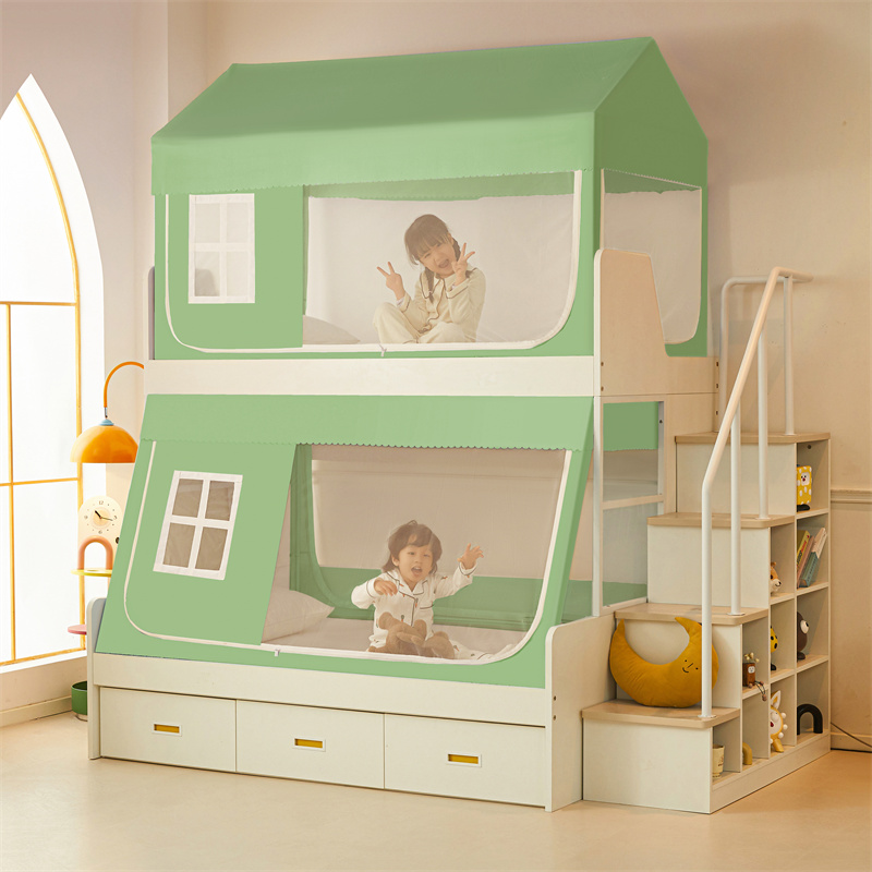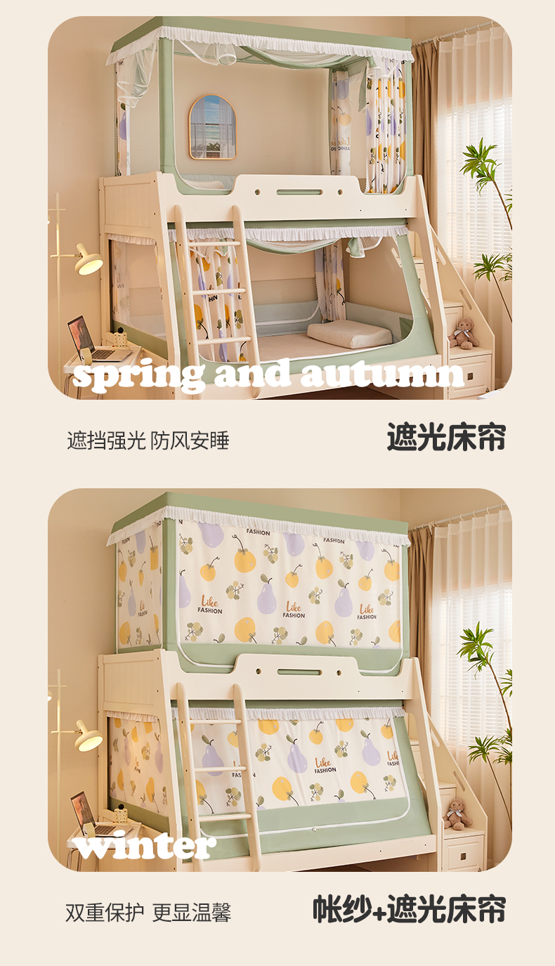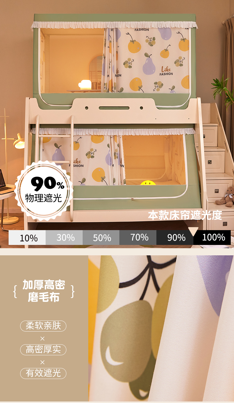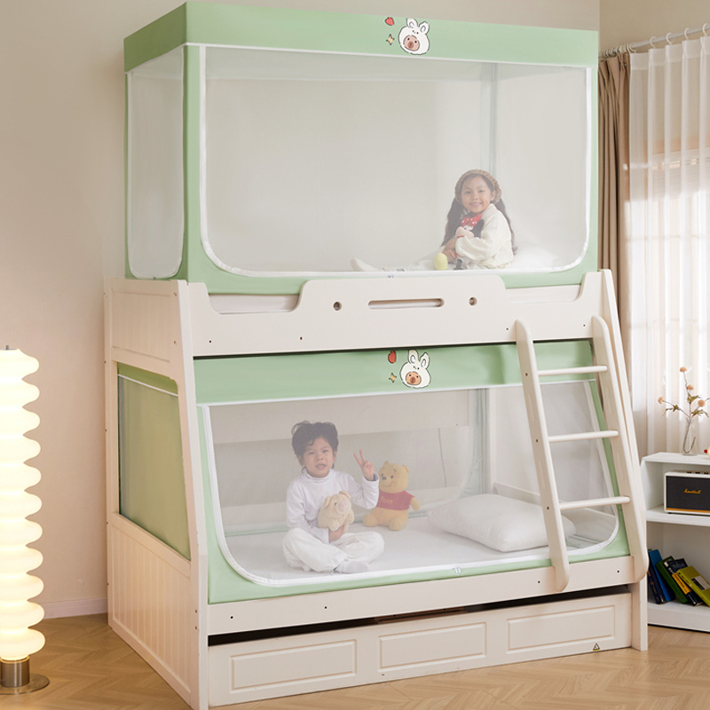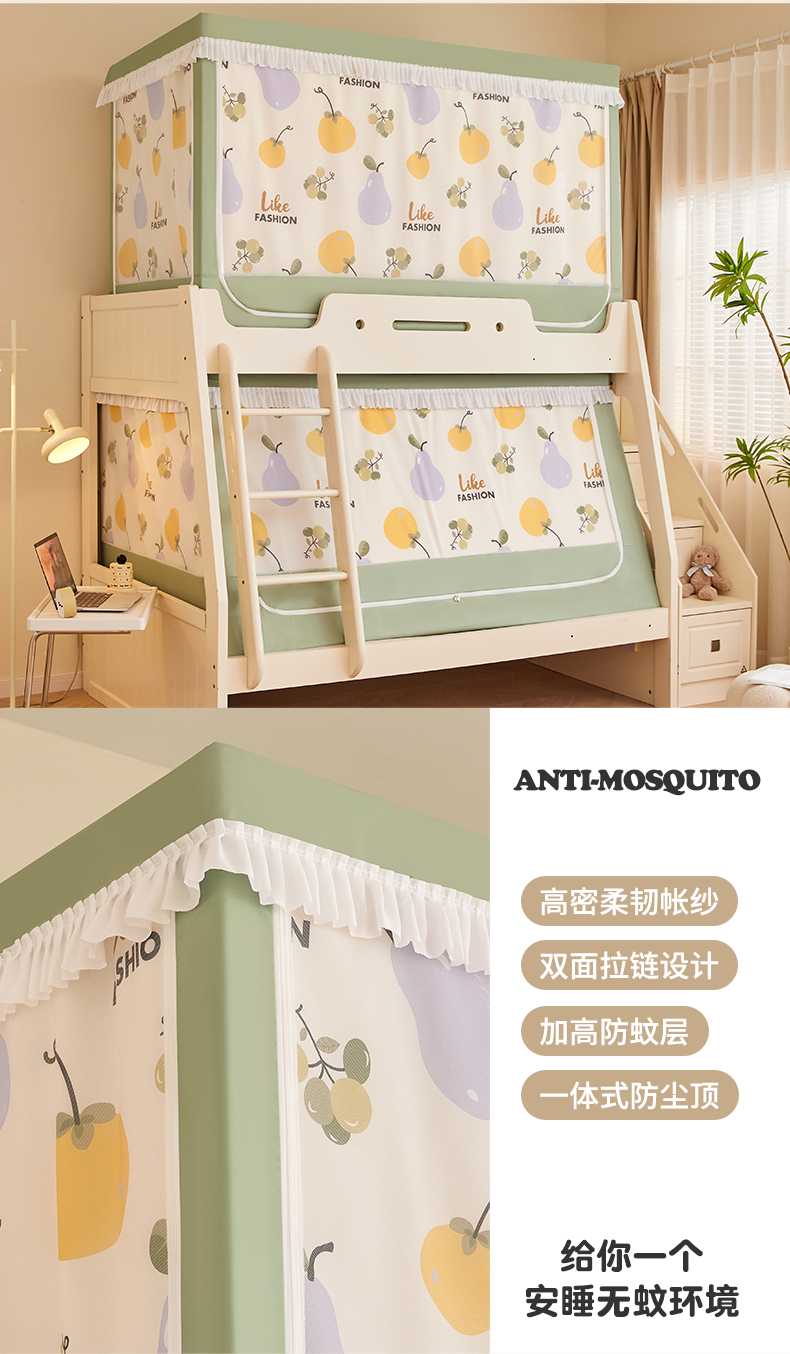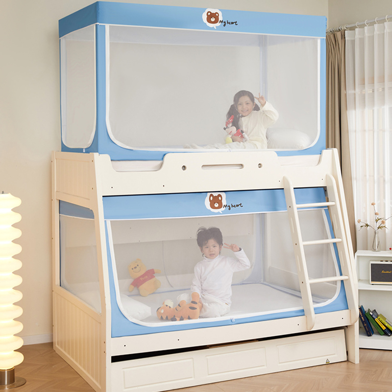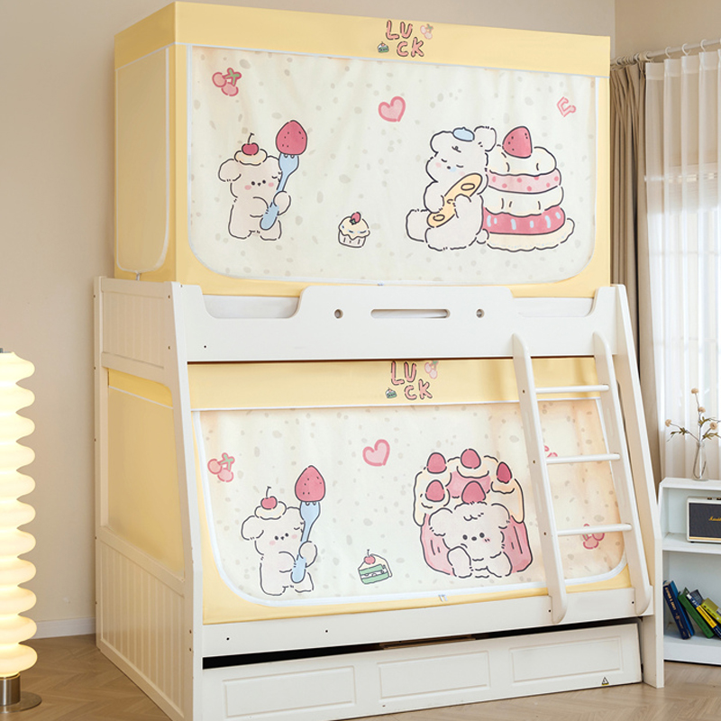 가정용 이층 침대 모기장 2025 새로운 낙하 방지 어린이 이층 침대 기숙사 상단 레벨 차광 침대 커튼 일체형