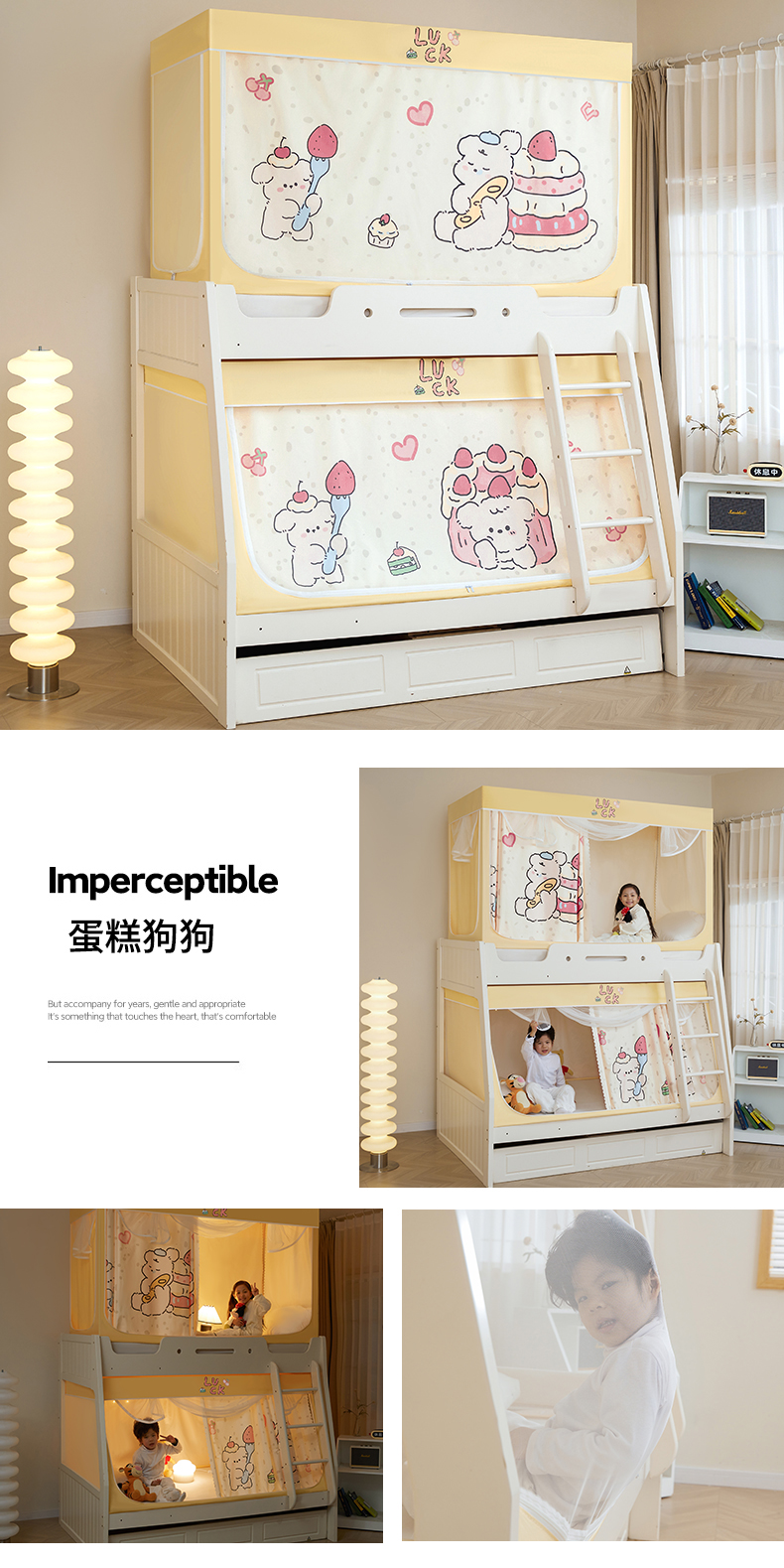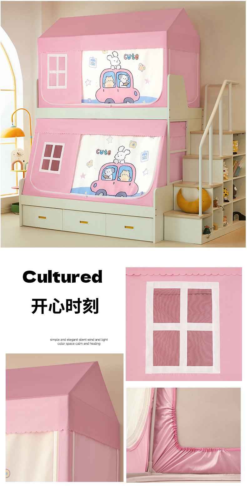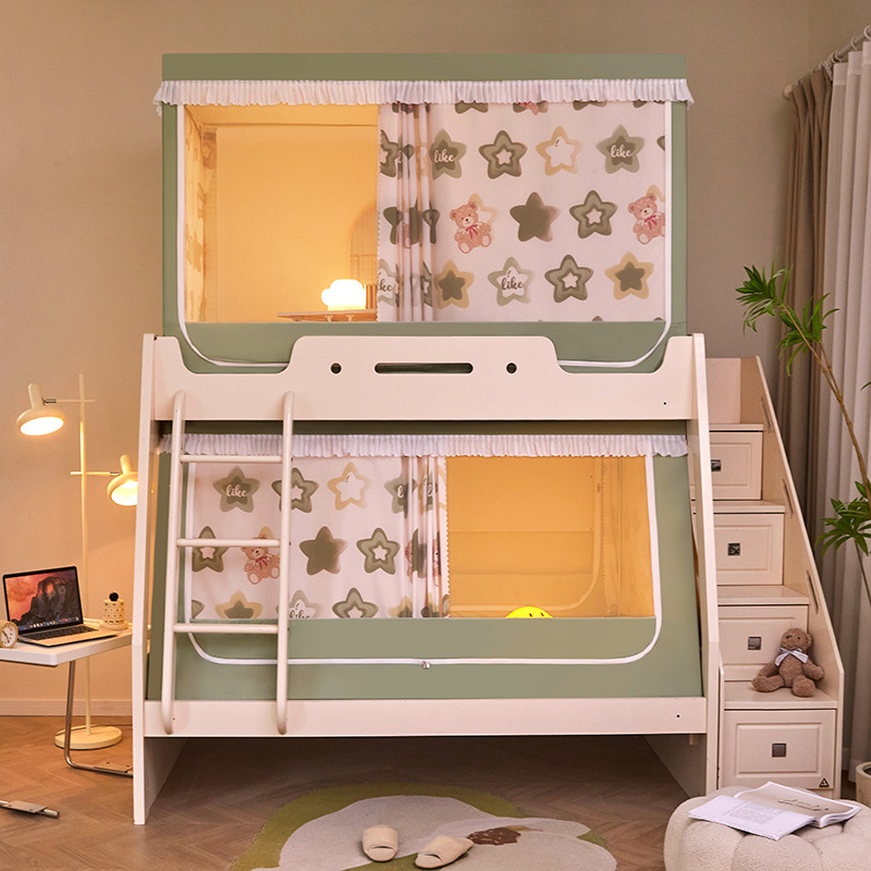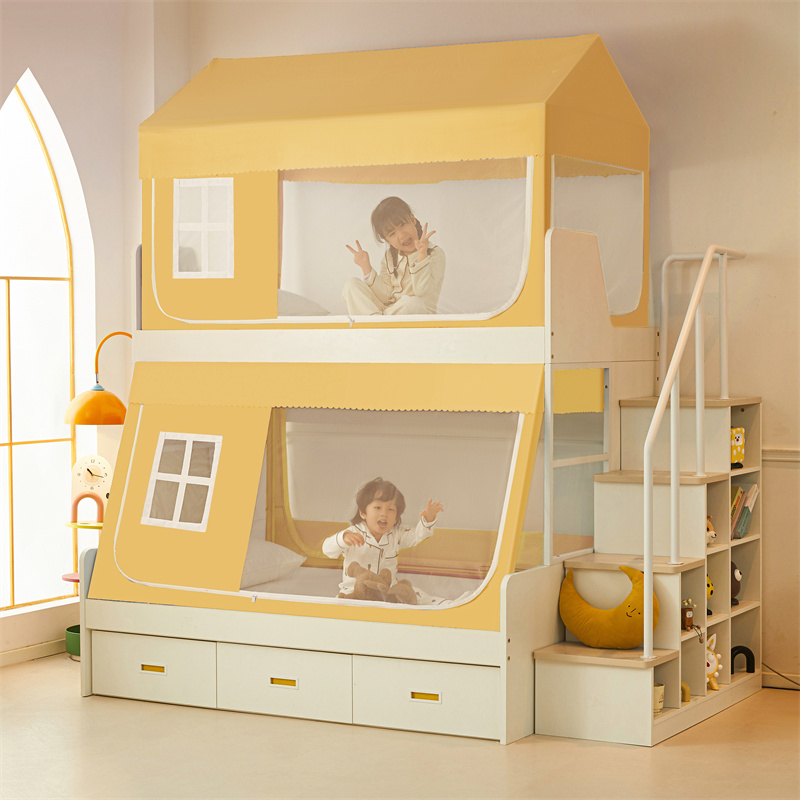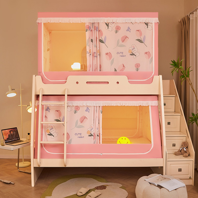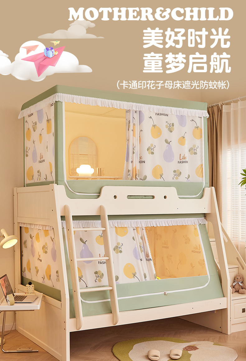 가정용 이층 침대 모기장 2025 새로운 낙하 방지 어린이 이층 침대 기숙사 상단 레벨 차광 침대 커튼 일체형
