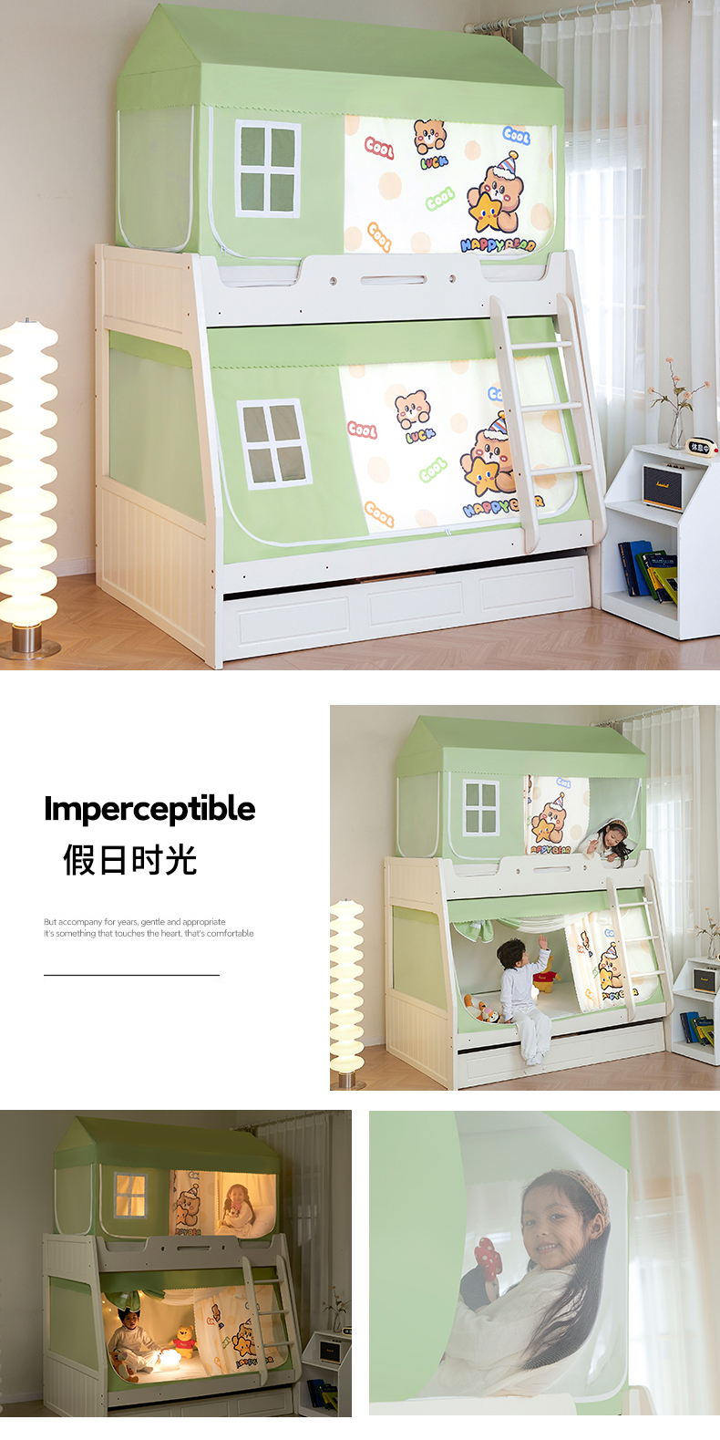 • 1.2 상부 침대 : 폭 120* 길이 190* 높이 90~115cm 3도어