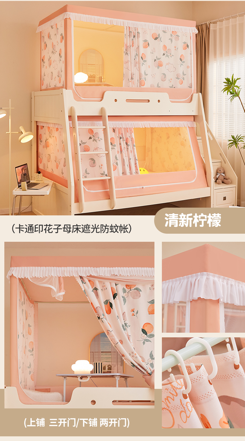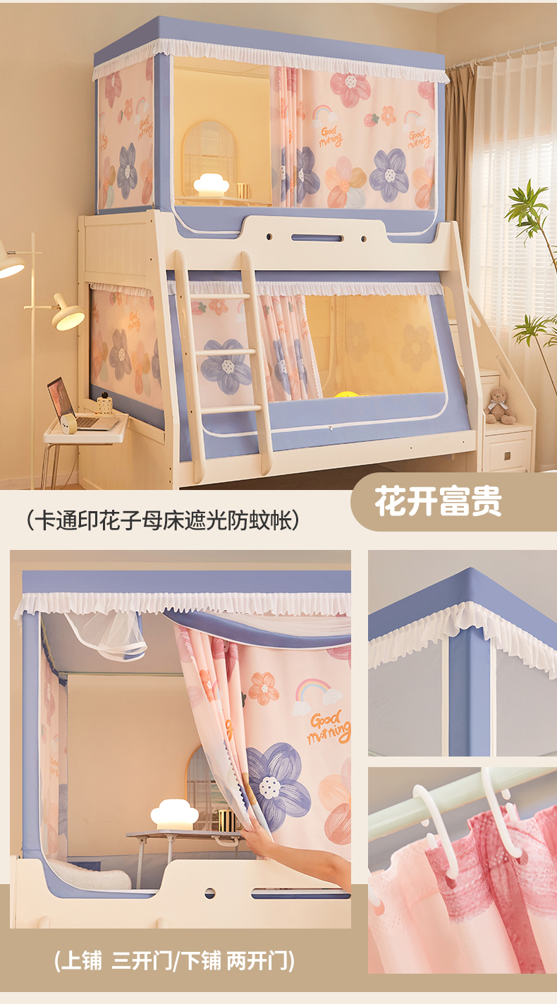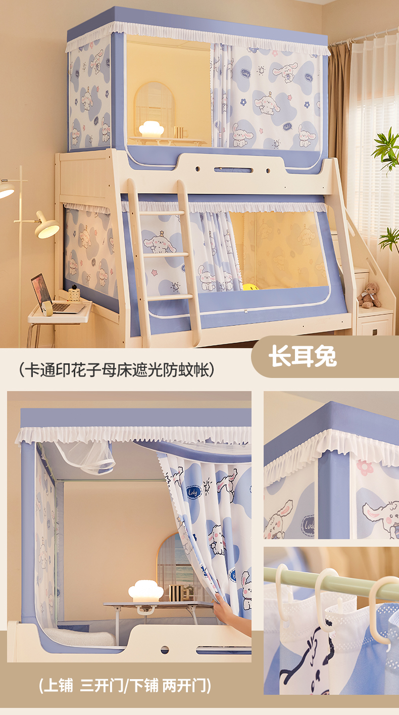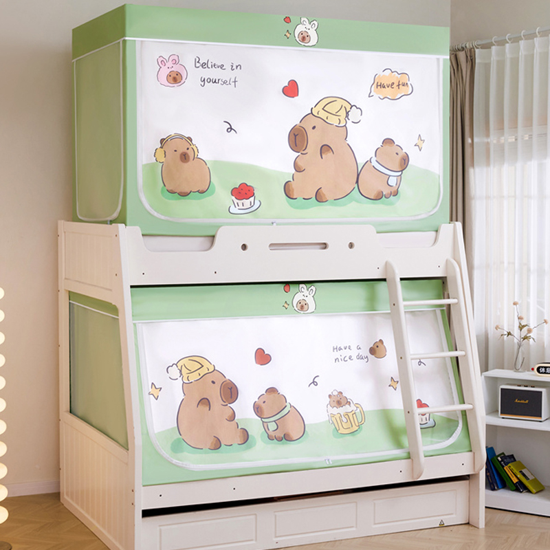 가정용 이층 침대 모기장 2025 새로운 낙하 방지 어린이 이층 침대 기숙사 상단 레벨 차광 침대 커튼 일체형스토어 가기