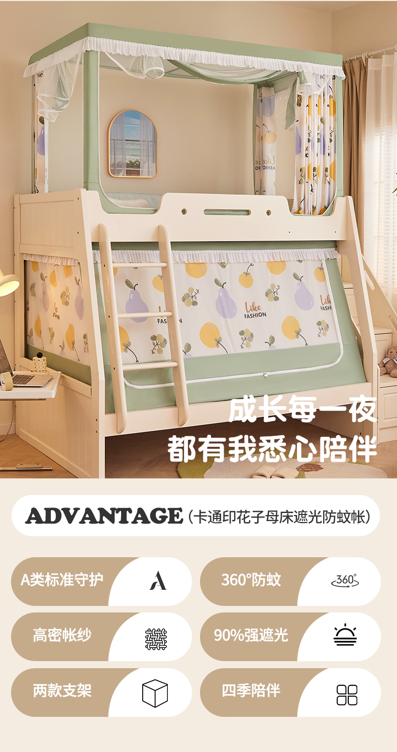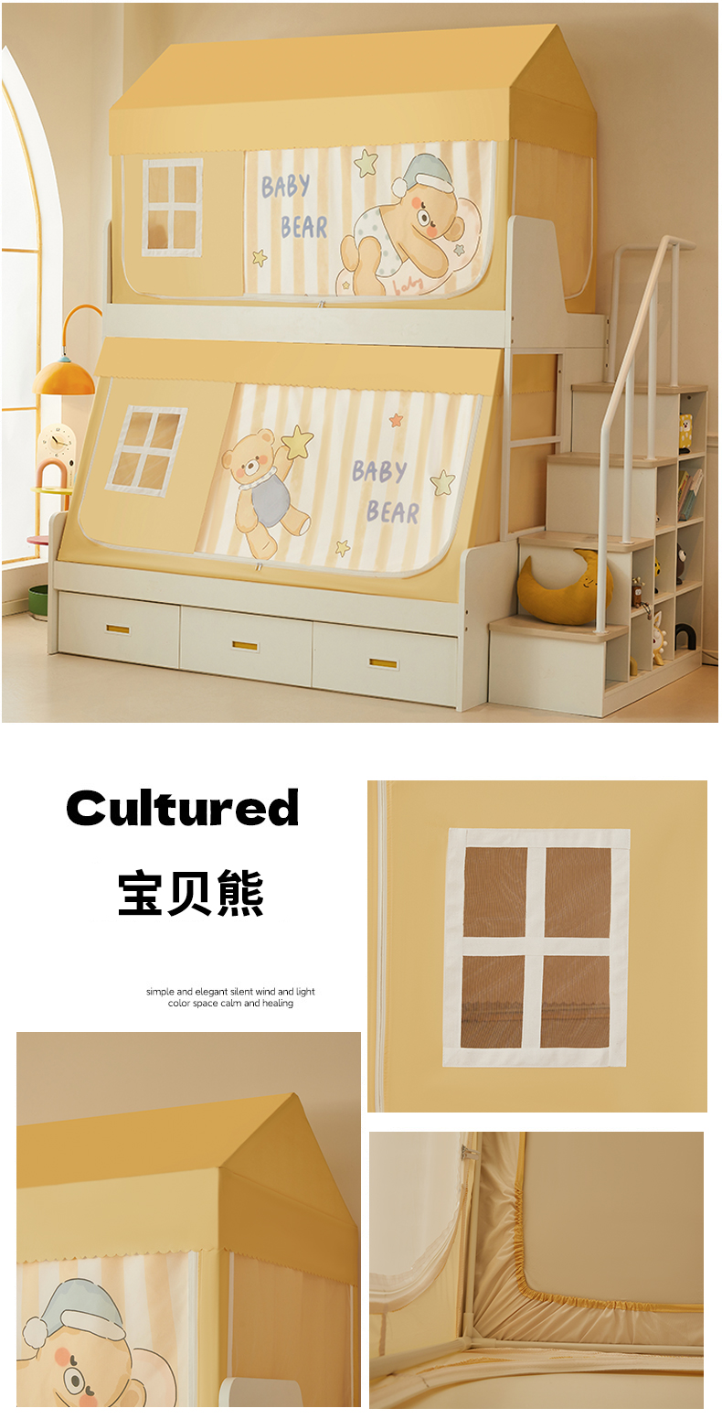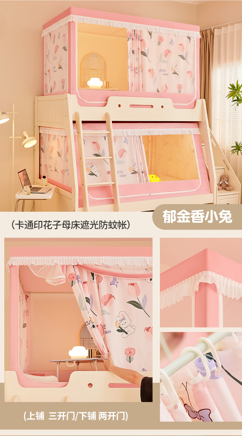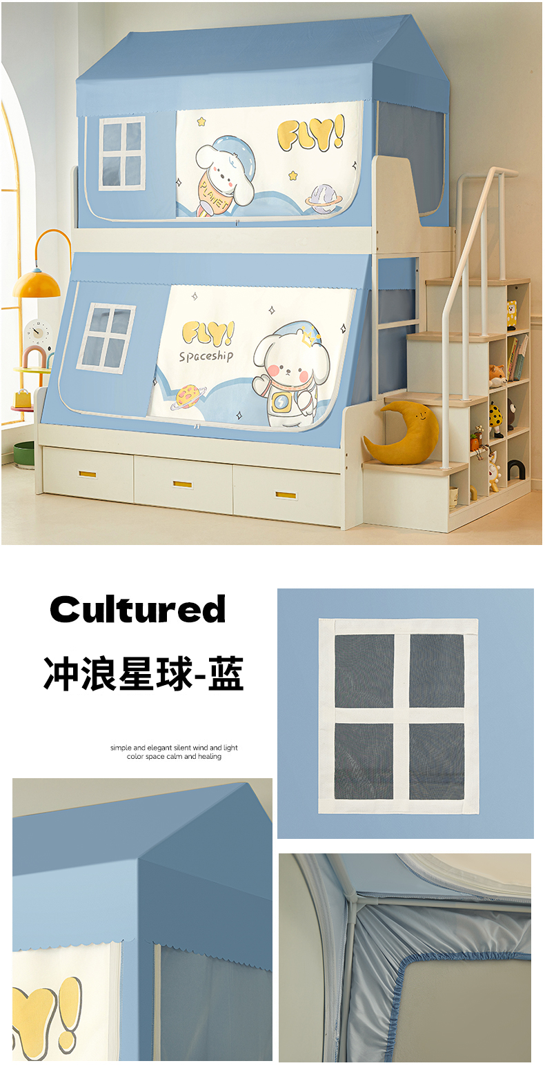 가정용 이층 침대 모기장 2025 새로운 낙하 방지 어린이 이층 침대 기숙사 상단 레벨 차광 침대 커튼 일체형스토어 가기