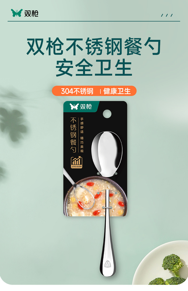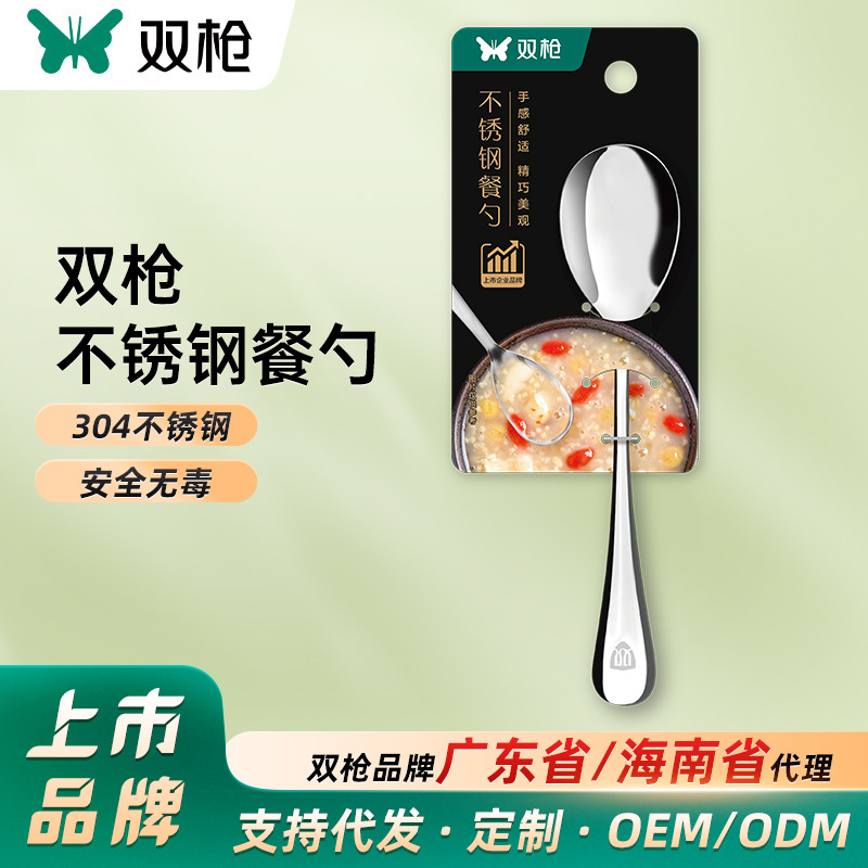 더블 건 304 스테인레스 스틸 스푼 식사 스푼 식품 학년 어린이 식사 수프 스푼 가정용 롱 핸들 통합 스푼 스푼