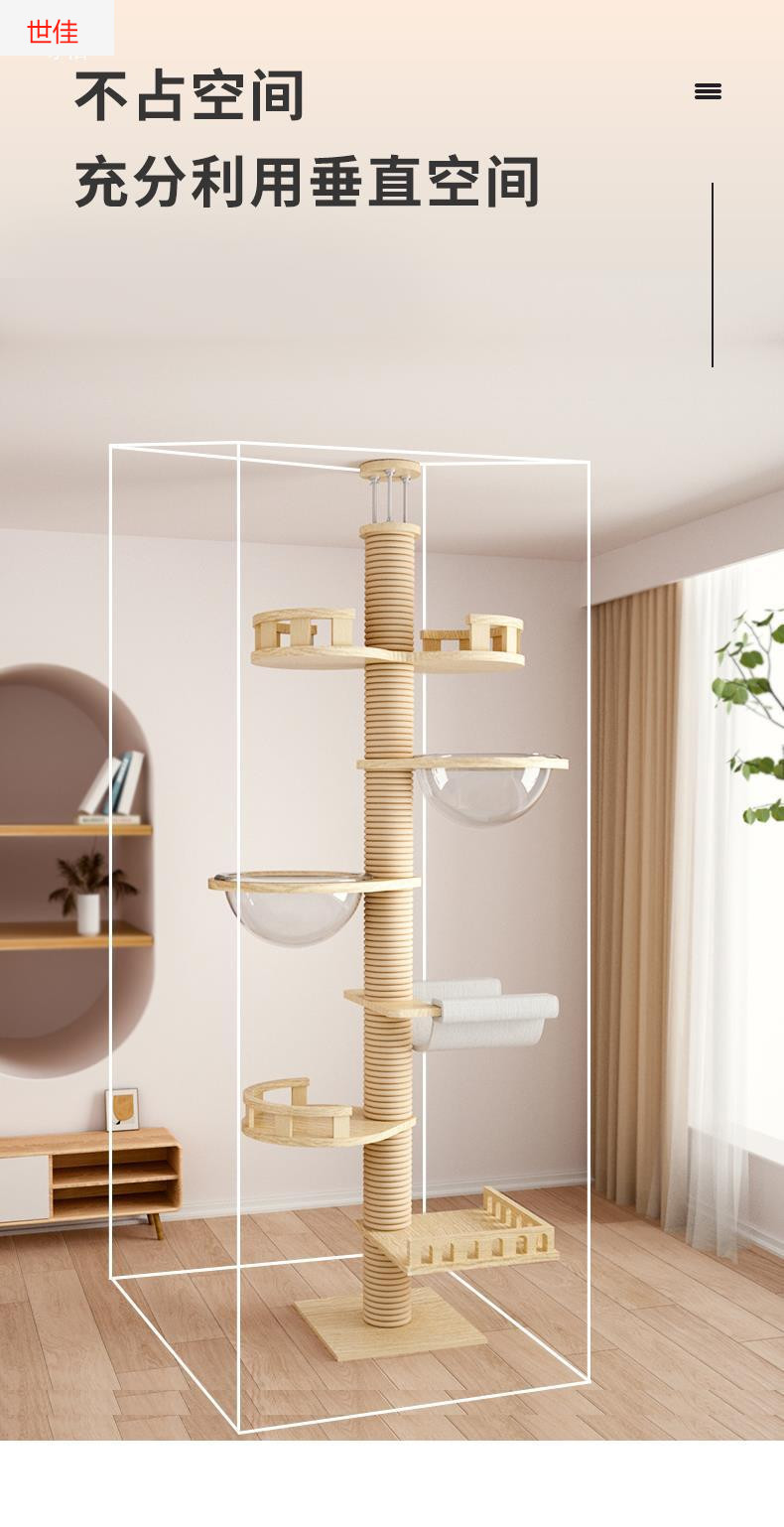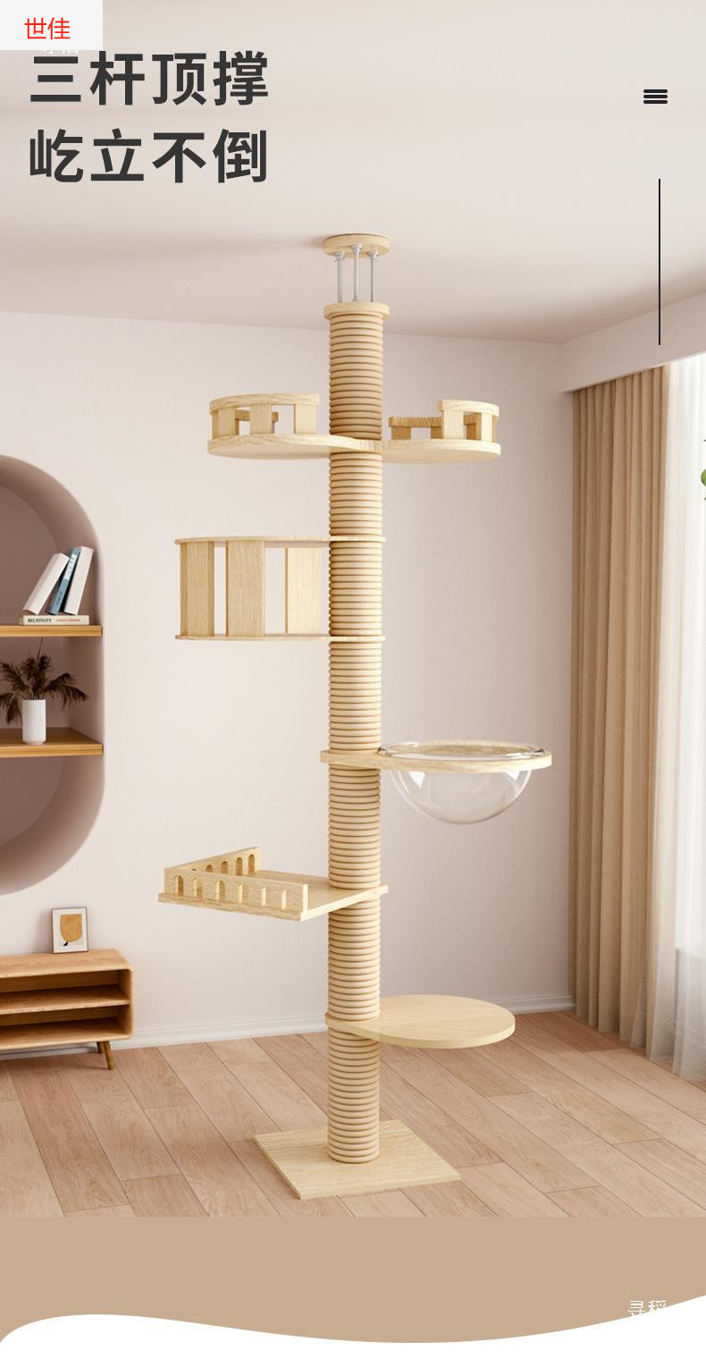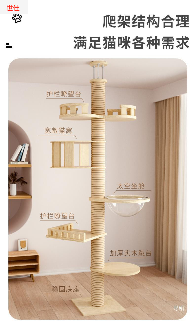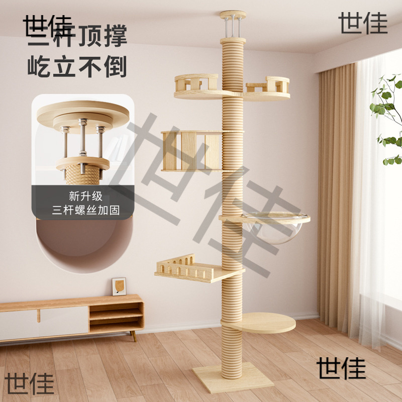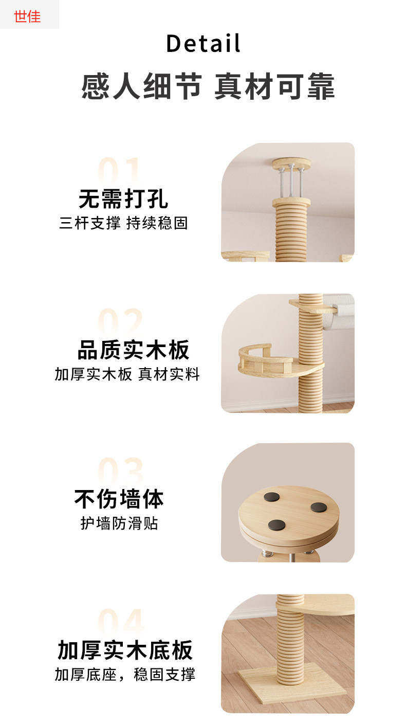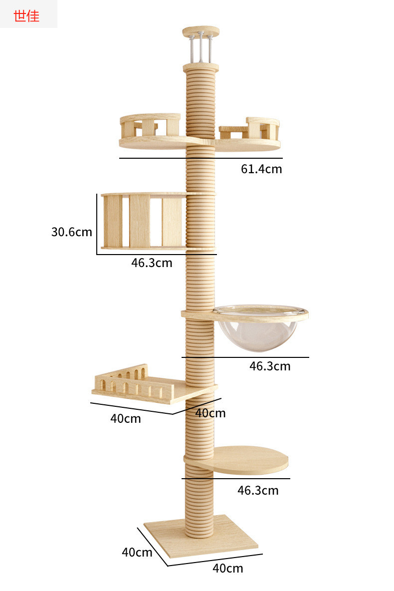 고층 고층 원목 고양이 클라이밍 프레임, 고급 가정용 고양이 스크래치 플랫폼