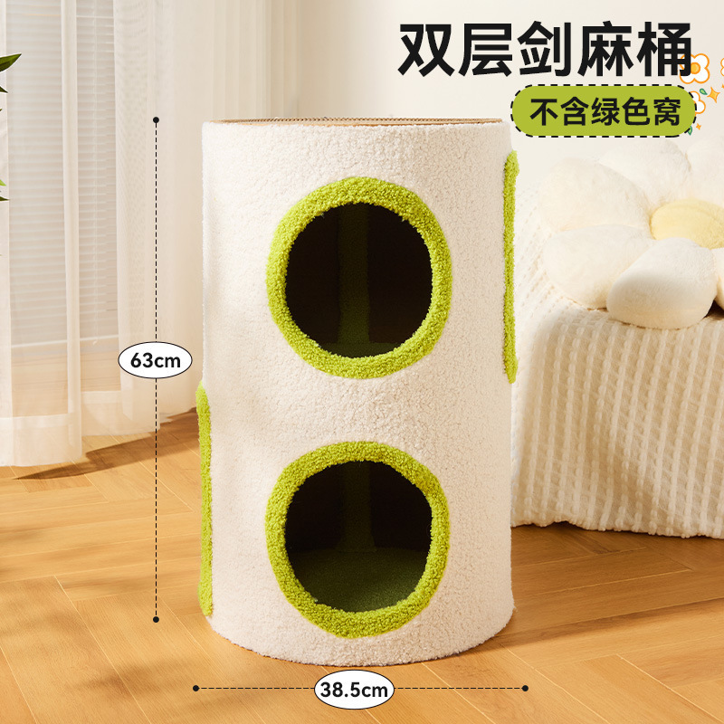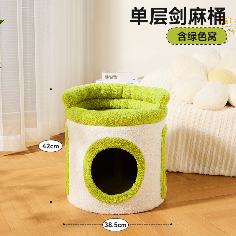 그레이캣 버킷, 고양이 클라이밍 프레임, 나무 구멍, 고양이 둥지, 고양이 트리 일체형 사이잘 버킷, 고양이 스크래치 보드 둥지, 긁힘 방지 및 따뜻한 이중 고양이 둥지