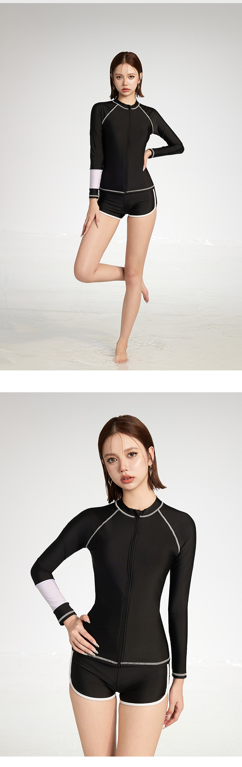 2025 새로운 수영복 여성의 새로운 대형 스플릿 복서 보수적 슬리밍 긴 소매 레이싱 스포츠 방지
