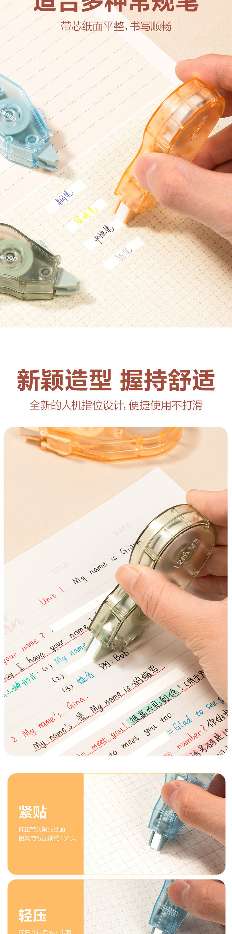델리 VR80-12 노동절약형 수정테이프 12m 가벼운 음성교정테이프 학생용 부드러운 수정테이프 노동절약형 수정테이프