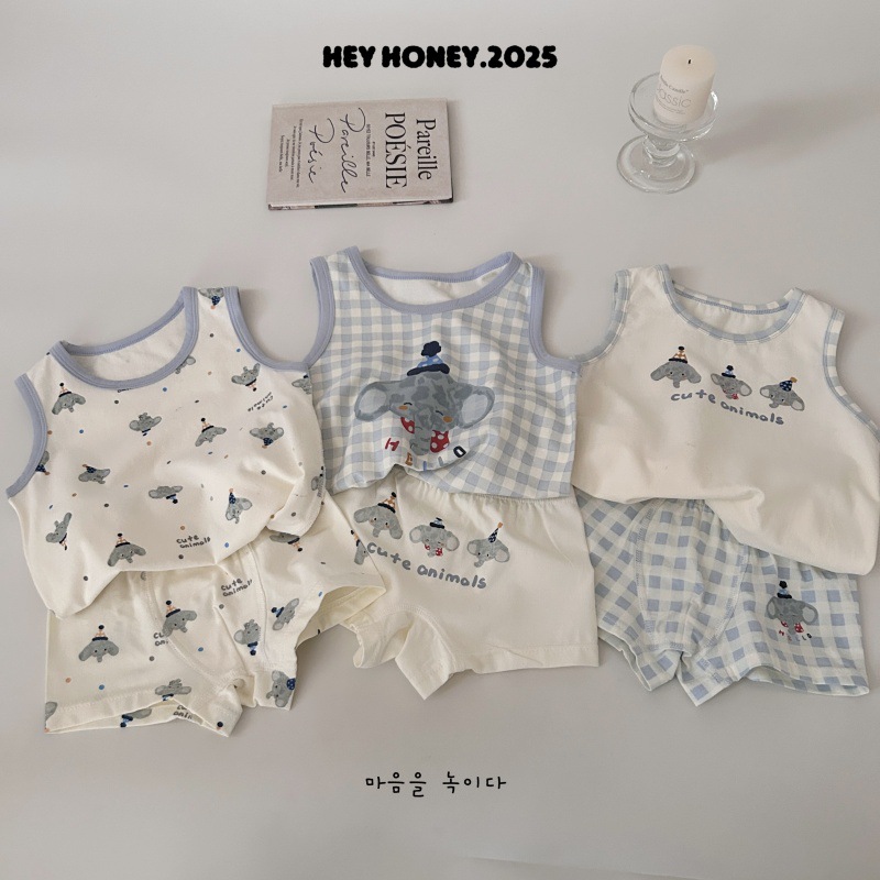 사이즈 롤 Heyhoney25 새로운 여름 어린이 속옷 3 피스 조합 소년과 소녀 아기 귀여운 만화 외국 스타일