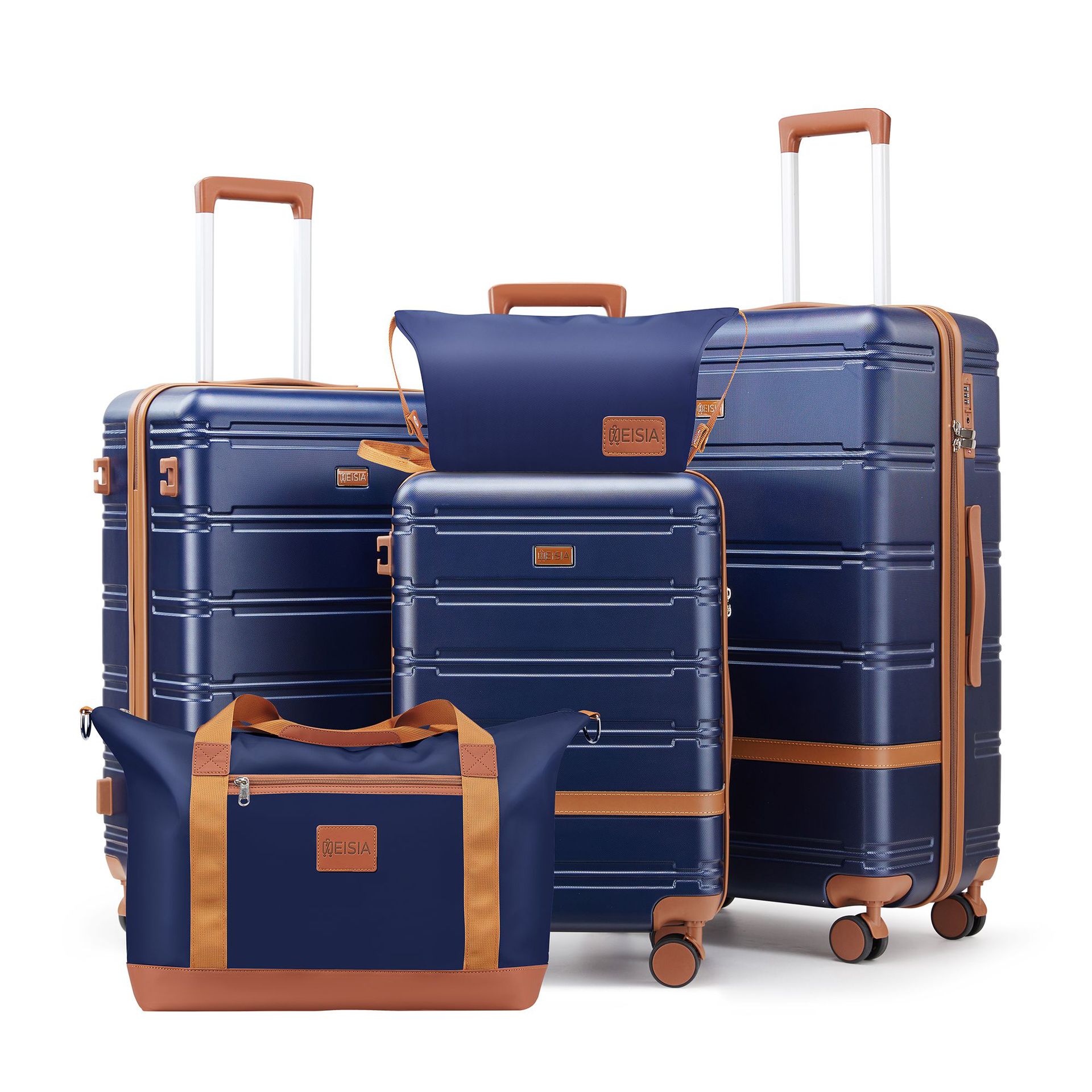 새로운 국경 아마존 4 피스 ABS 수하물은 조용한 범용 휠 세관 잠금 트롤리 케이스를 사용자 정의 할 수 있습니다.
