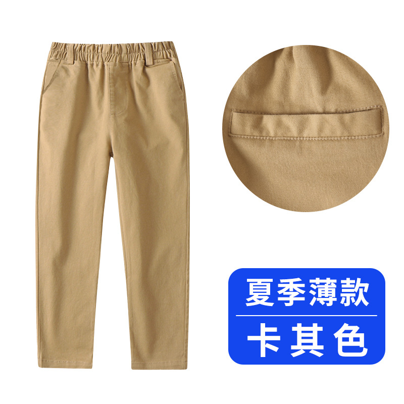 초등학생을위한 어린이 바지 남학생 카키 유니폼 캐주얼 여자 바지 봄과 가을 베이지 색 여름 얇은 바지스토어 가기