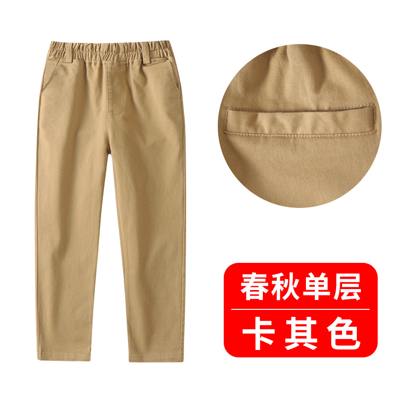 초등학생을위한 어린이 바지 남학생 카키 유니폼 캐주얼 여자 바지 봄과 가을 베이지 색 여름 얇은 바지