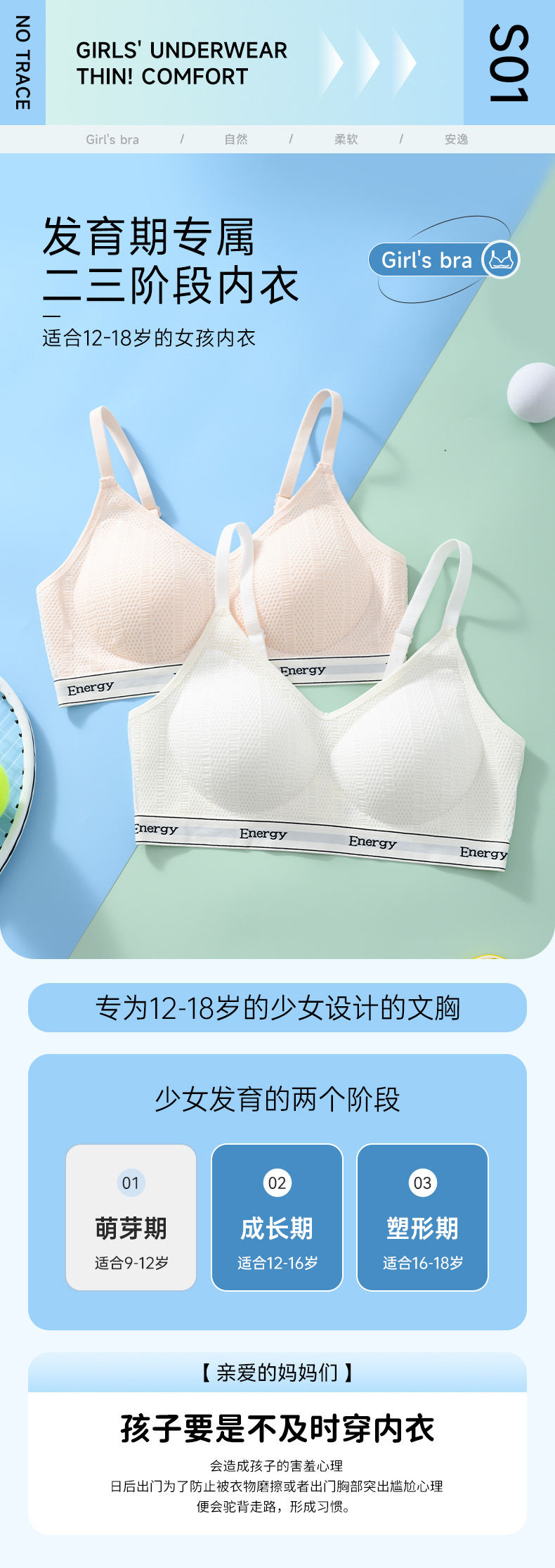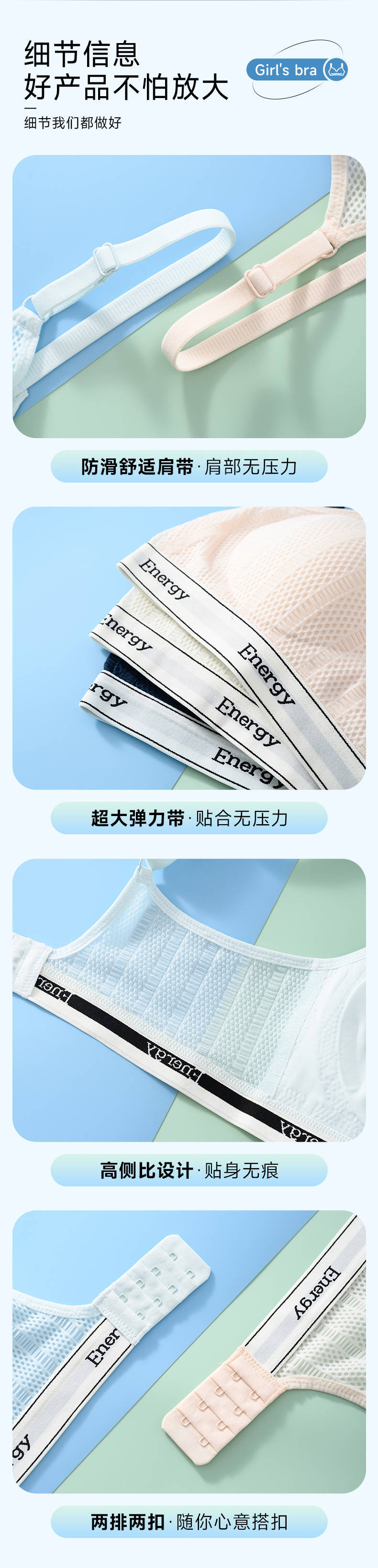 여아 속옷, 청소년 발달기, 중학생, 고등학생, 여아 2~3단계 스포츠 조끼 브라