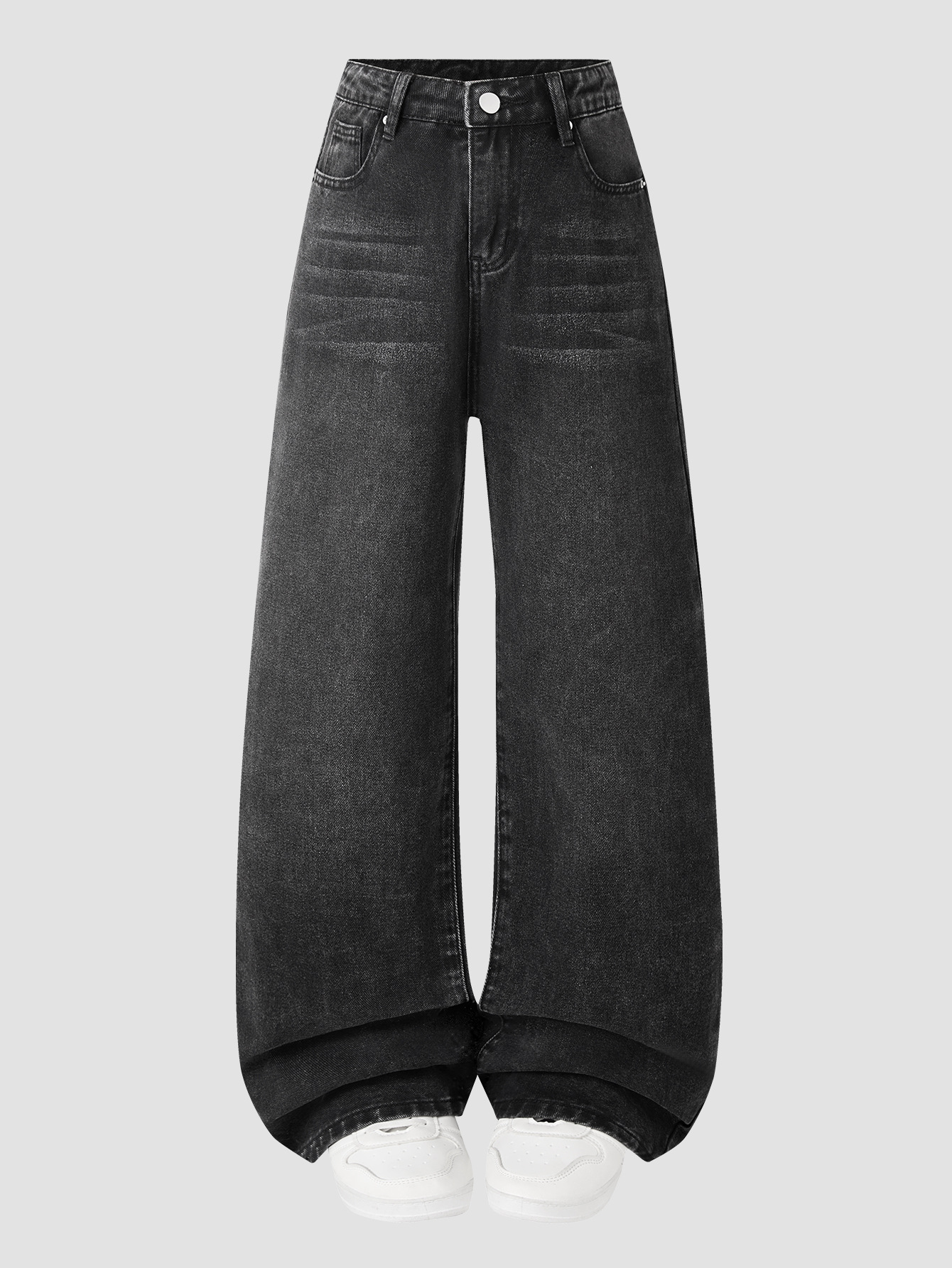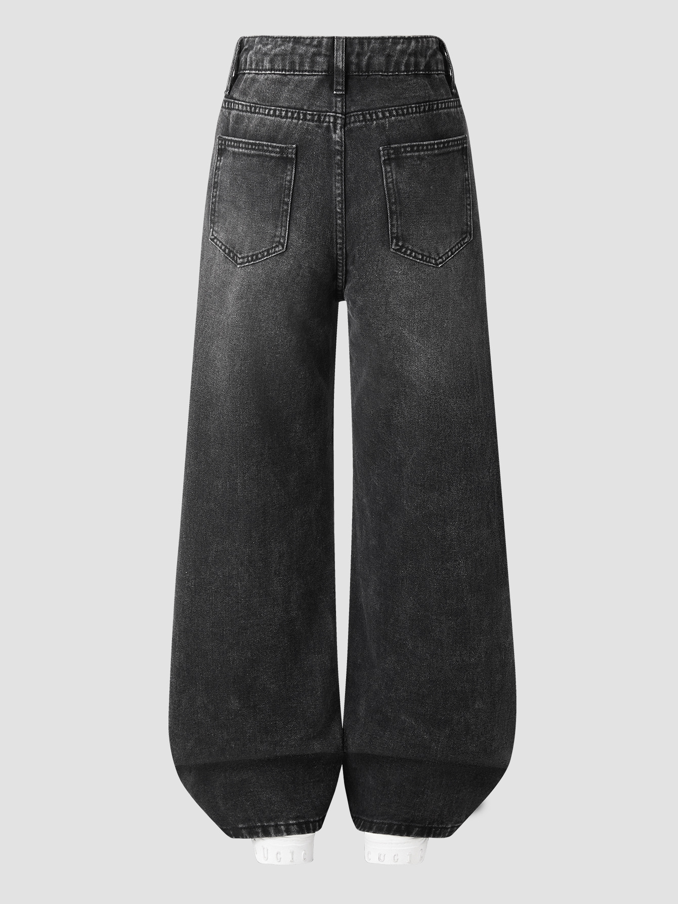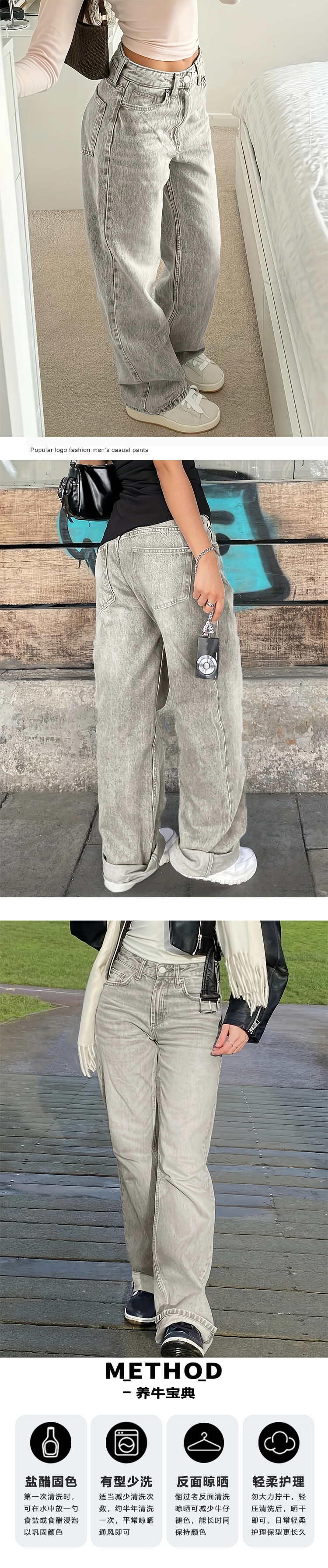 유럽 및 미국 아마존 청소년 소녀들을 위한 허리 조절 가능한 패셔너블한 하이웨이스트 레트로 스트레이트 팬츠