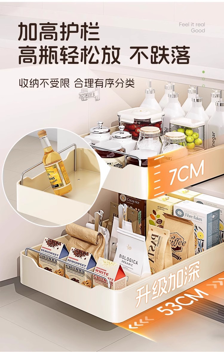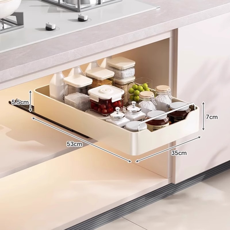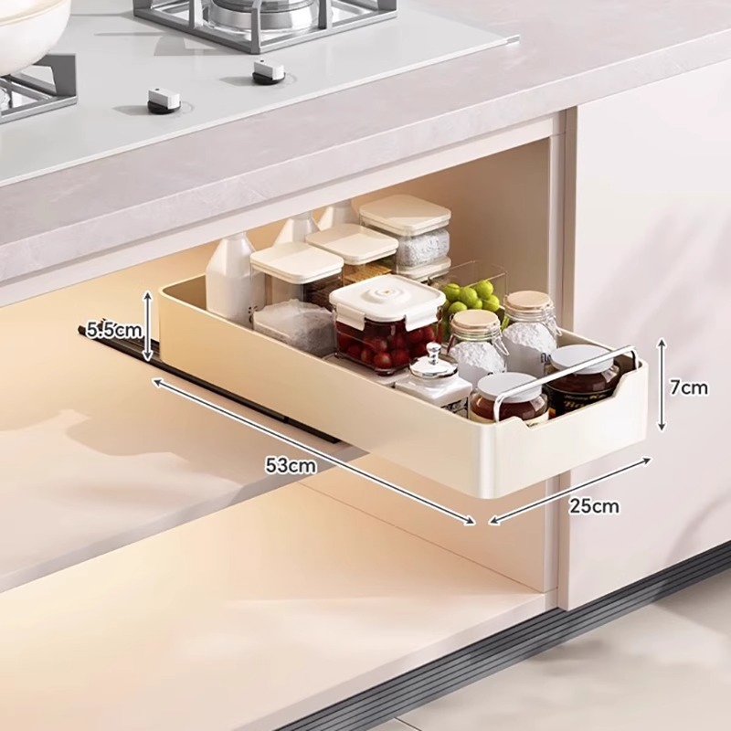 다기능 주방 캐비닛 내부 풀아웃 스토리지 랙 내장 서랍 유형 깊은 캐비닛 저장 상자 낮은 싱크 좁은 슬릿 바구니