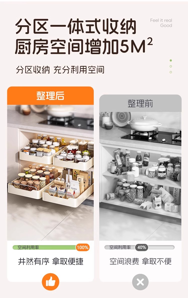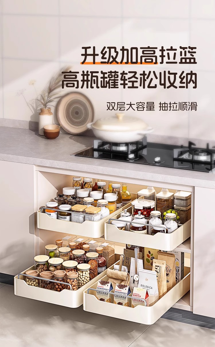 다기능 주방 캐비닛 내부 풀아웃 스토리지 랙 내장 서랍 유형 깊은 캐비닛 저장 상자 낮은 싱크 좁은 슬릿 바구니스토어 가기