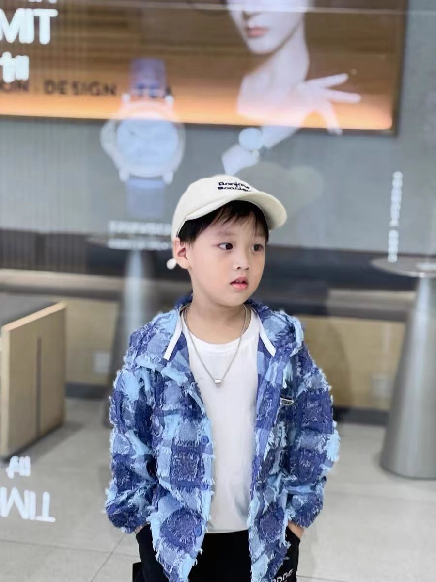 남성, 중년 및 청소년을 위한 새로운 봄, 가을 코트, 맞춤형 블루 플러시 후드 셔츠, 트렌디한 격자 무늬 아우터 탑스토어 가기