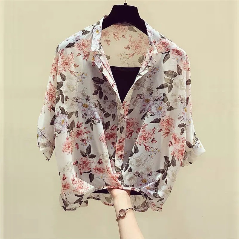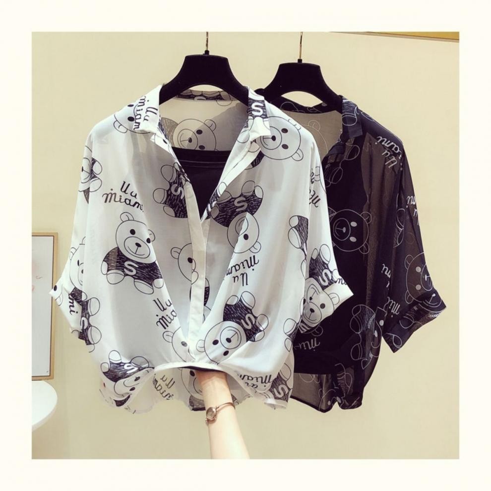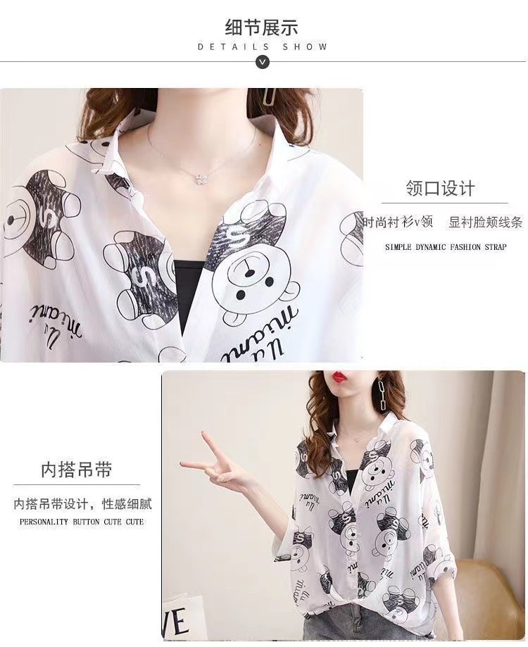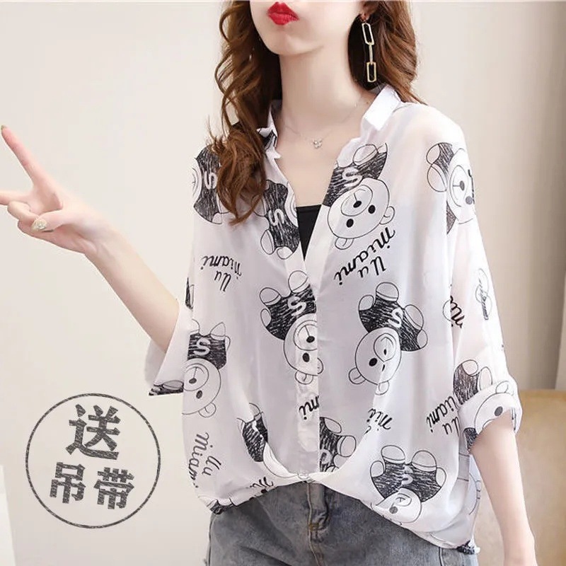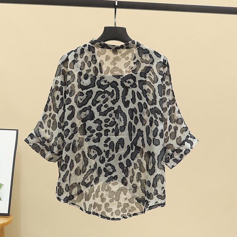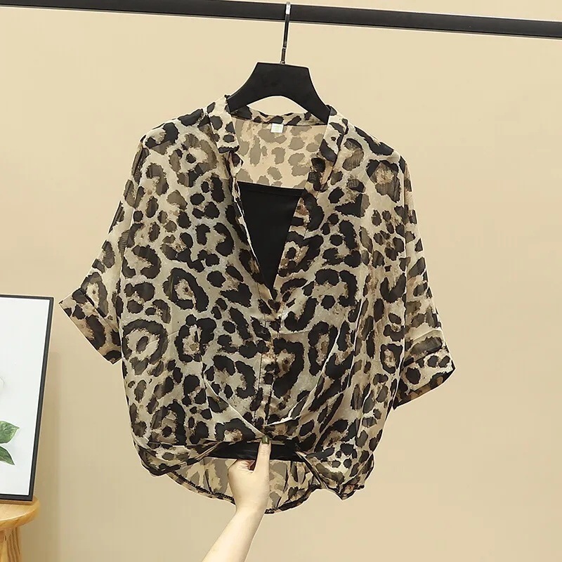 2025 Dolman Sleeve Top Women's Korean style Loose Belly-climm Chiffon 셔츠 투피스 세트 레오파드 무늬 Dolman Collar스토어 가기