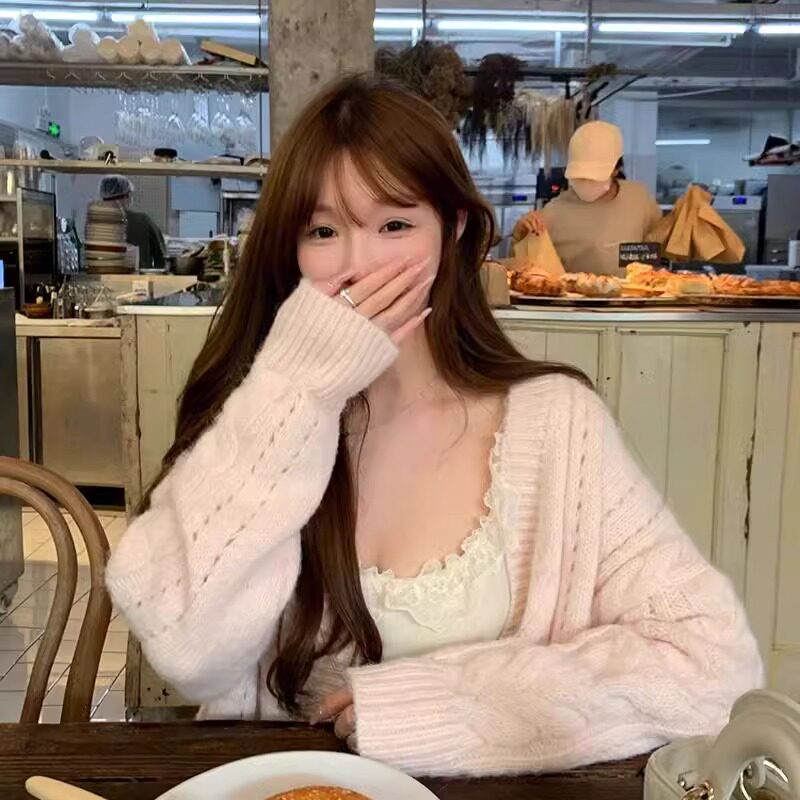 여성용 요정 부드러운 V 넥 니트 가디건 핑크 봄 느슨한 게으른 트위스트 스웨터 코트 탑스토어 가기