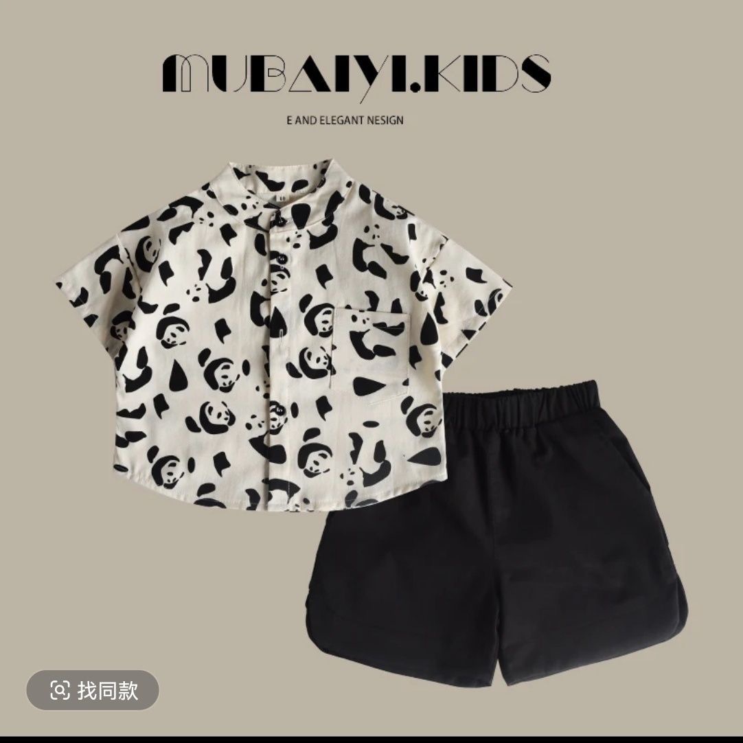 소년 2025 여름 새 셔츠 반바지 팬더 프린트 셔츠 캐주얼 느슨한 편안한 바지 투피스 세트스토어 가기
