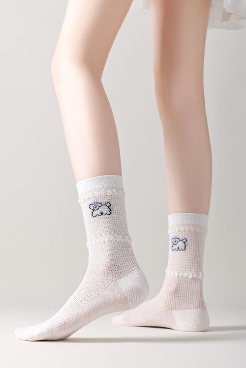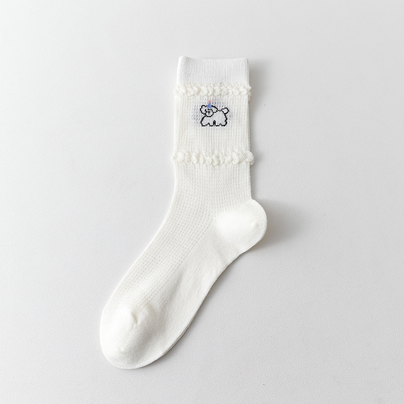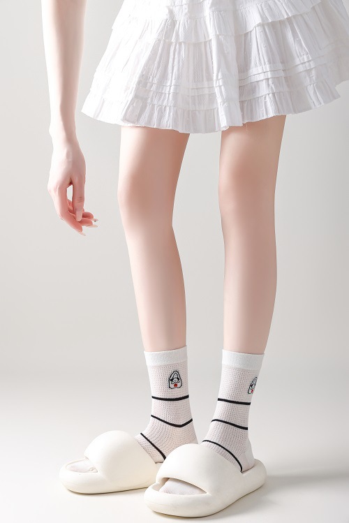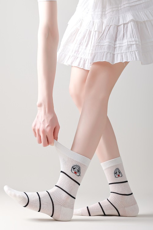 어린이를위한 만화 양말 뼈없는 중간 길이 양말 Instagram 스타일 봄과 여름 일본 스타일 귀여운 대학 스타일 강아지 줄무늬 스타킹스토어 가기