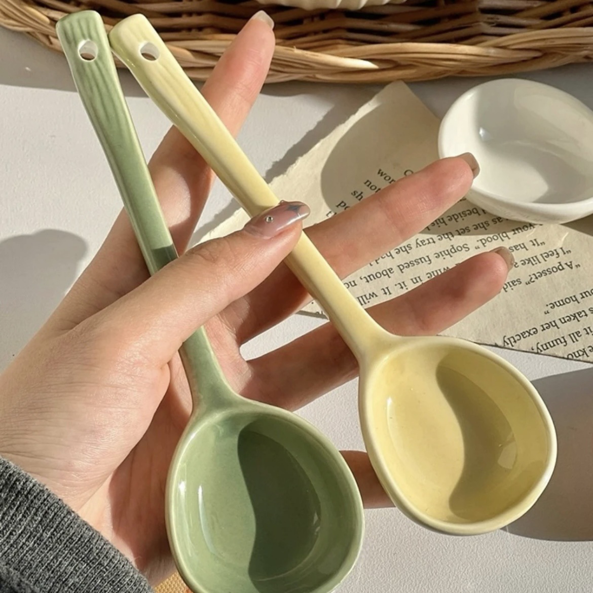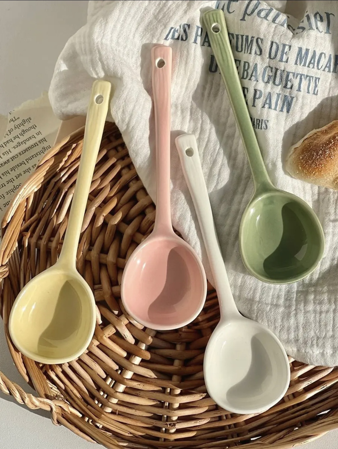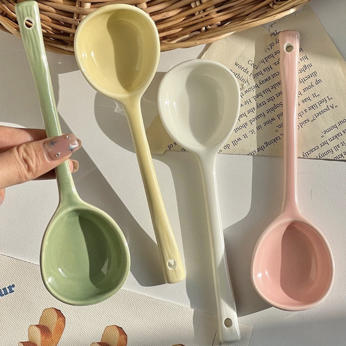 세라믹 스푼, 귀여운 캔디 컬러 작은 수프 스푼 일본 스타일 가정용 다이닝 스푼 높은 뷰티 가치 긴 핸들 스푼 디저트 스푼스토어 가기