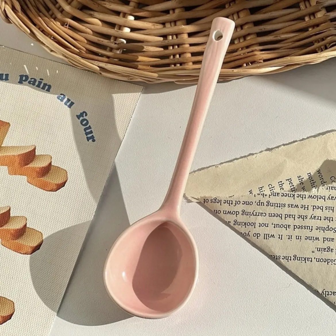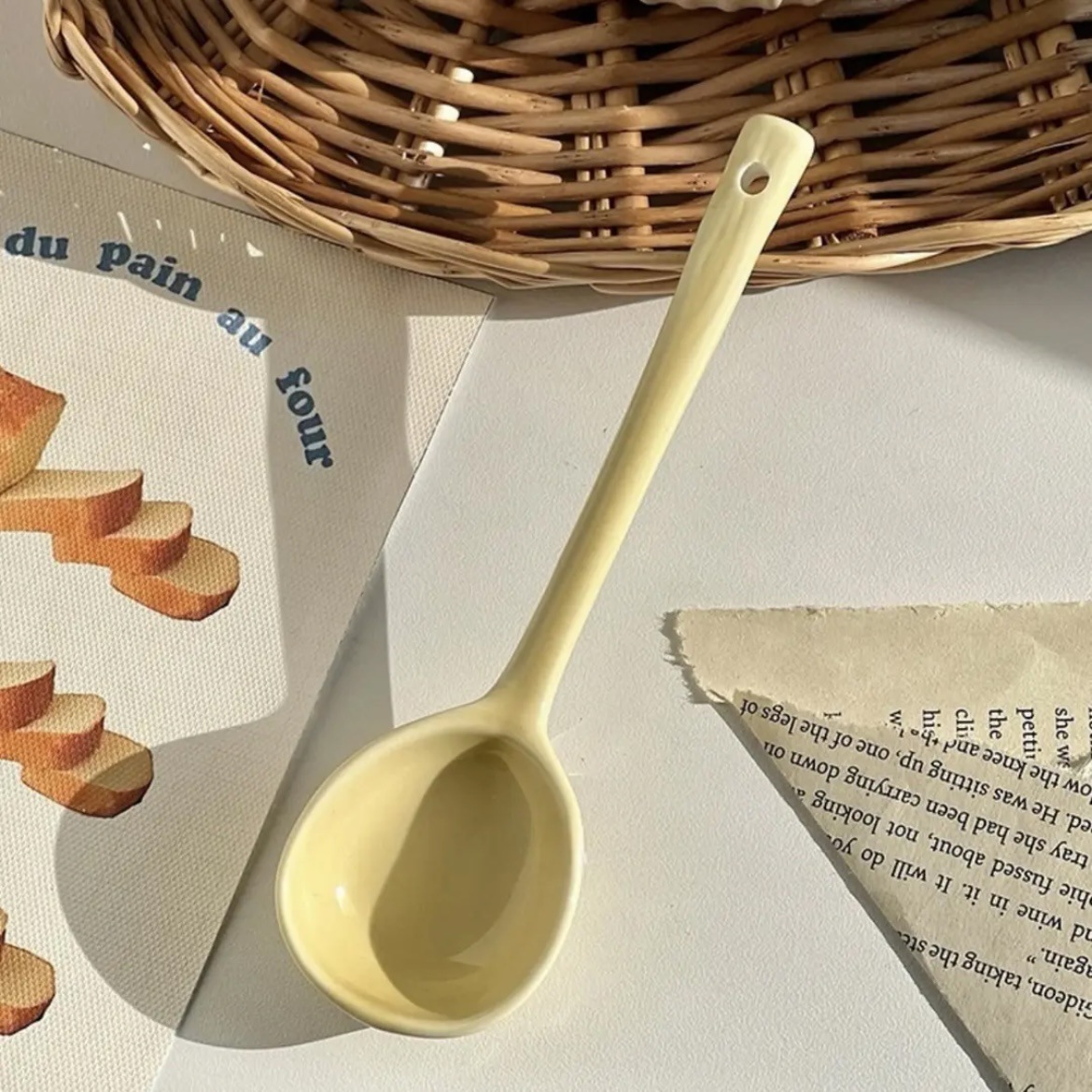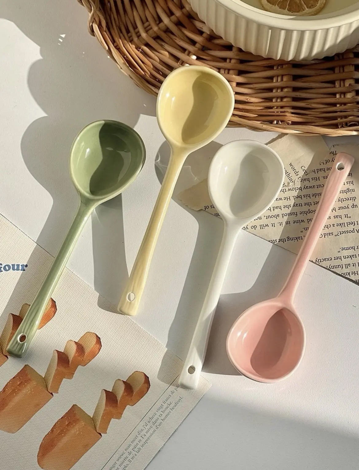 세라믹 스푼, 귀여운 캔디 컬러 작은 수프 스푼 일본 스타일 가정용 다이닝 스푼 높은 뷰티 가치 긴 핸들 스푼 디저트 스푼스토어 가기