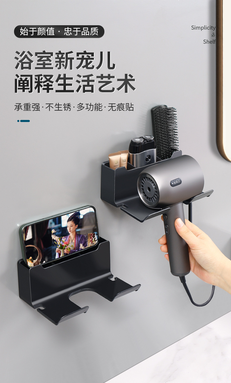 도매 헤어 드라이어 선반 화장실 가정용 벽걸이 형 욕실 브래킷 펀치없는 보관 보관스토어 가기