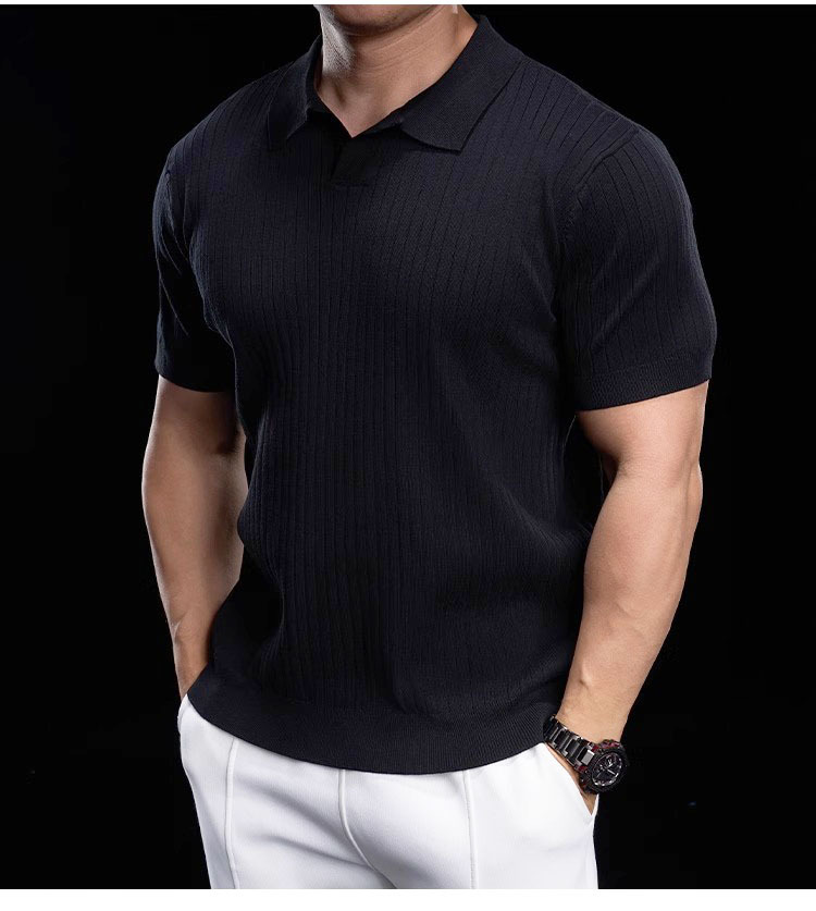 줄무늬 반팔 니트 폴로 셔츠 남자의 여름 옷깃 폴 셔츠 슬림 캐주얼 얇은 조수 대외 무역 국경 도매스토어 가기