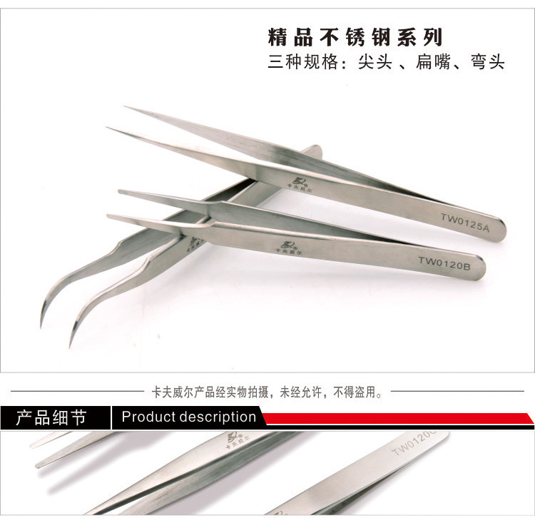 Kraftwell 산업용 정전기 방지 스테인레스 스틸 핀셋 추출기 플랫 노즐 핀셋 팁 핀셋 곡선 팁 핀셋