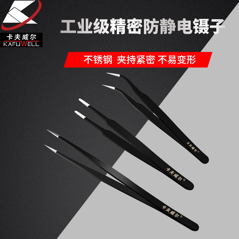 Kraftwell 산업용 정전기 방지 스테인레스 스틸 핀셋 추출기 플랫 노즐 핀셋 팁 핀셋 곡선 팁 핀셋스토어 가기