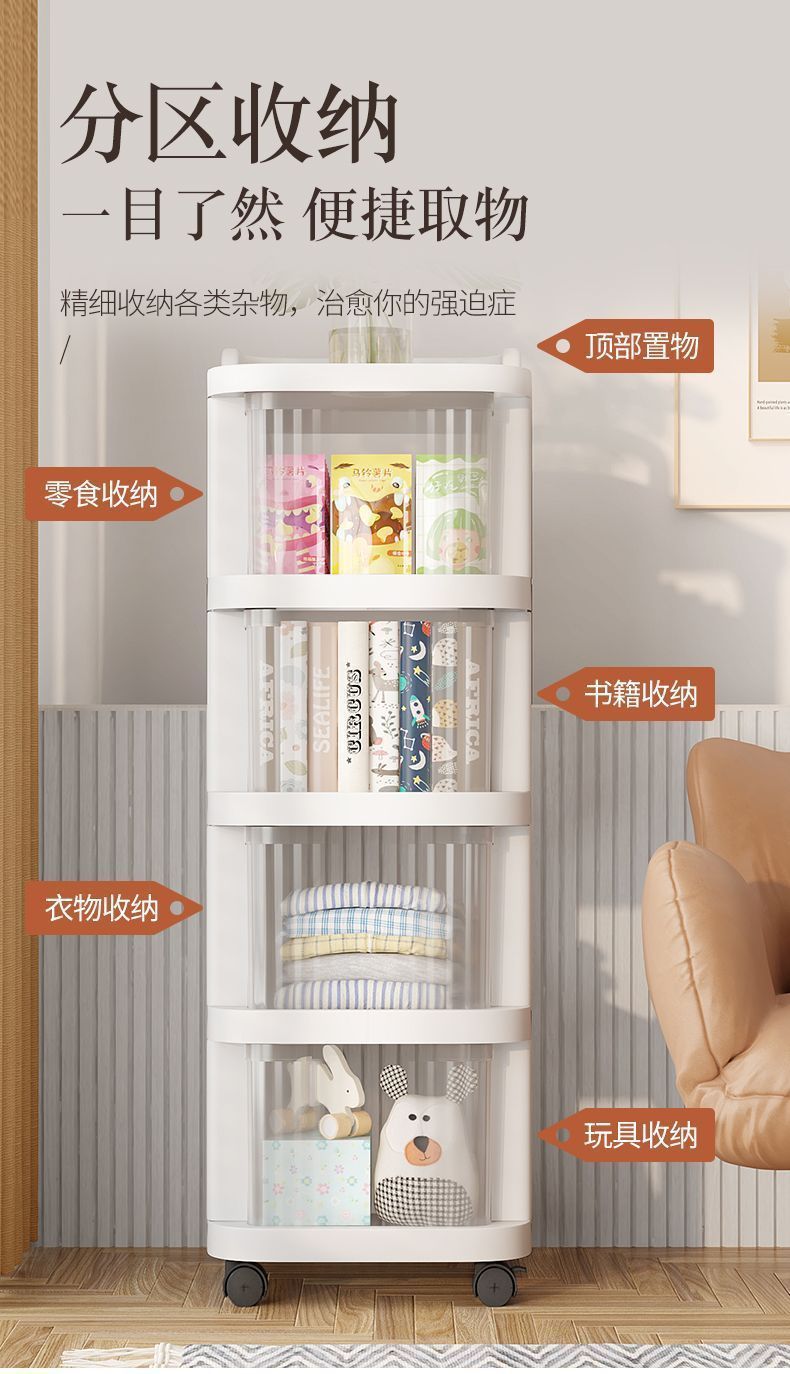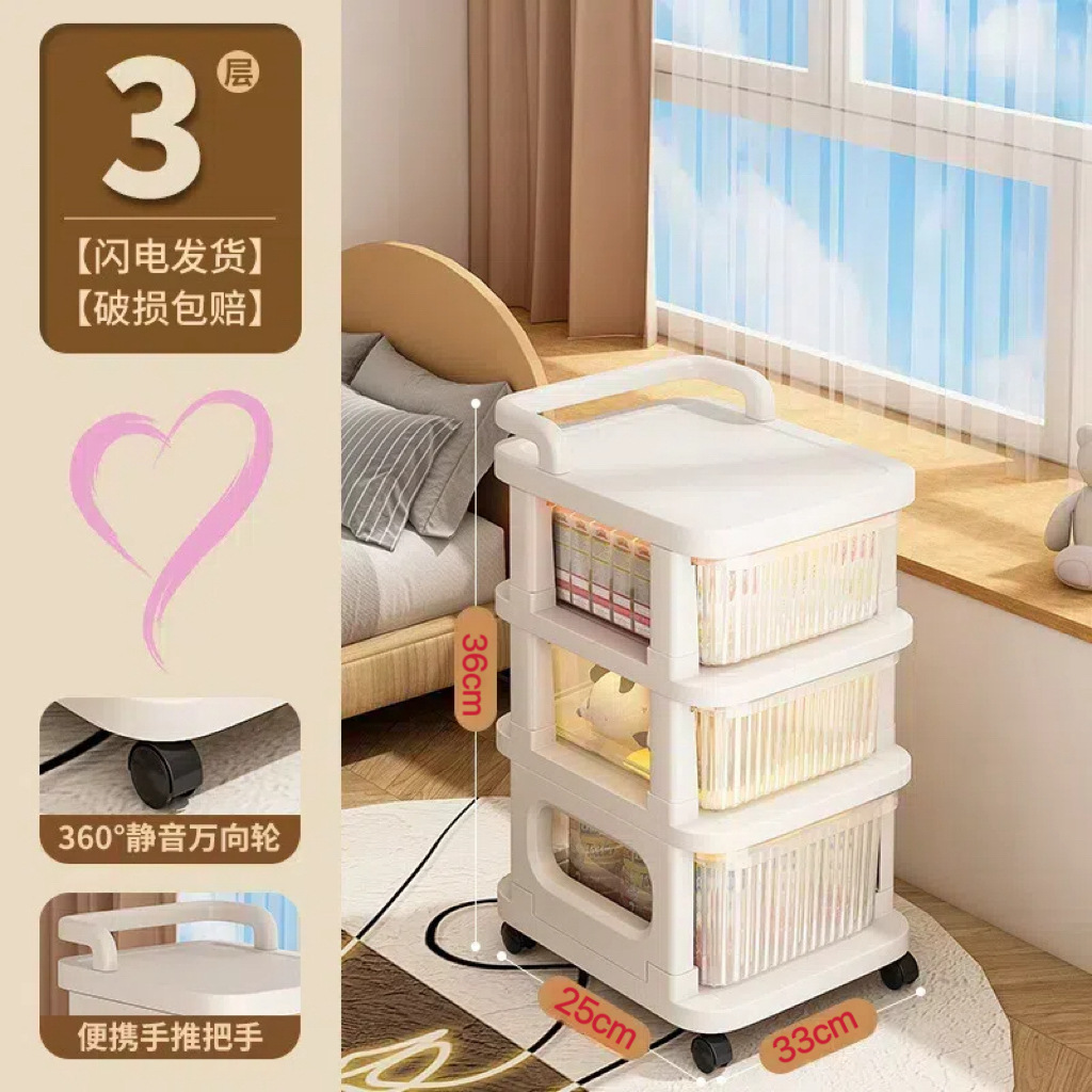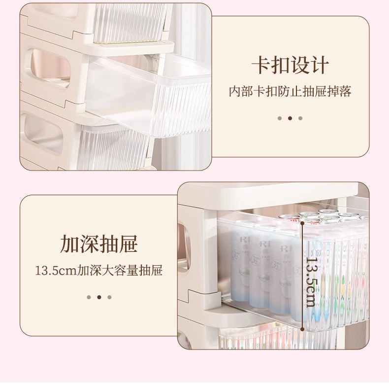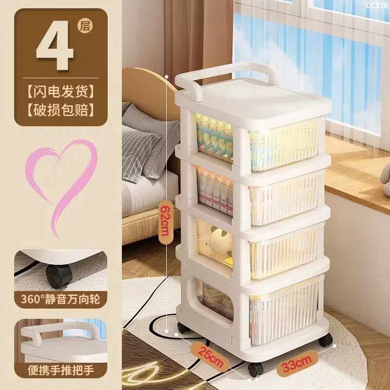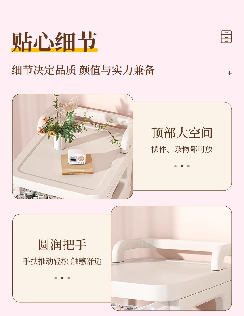 零食小推车可移动家用落地奶油风置物架婴儿用品收纳架玩具储物架
