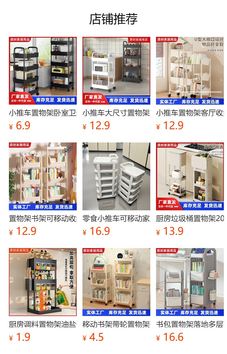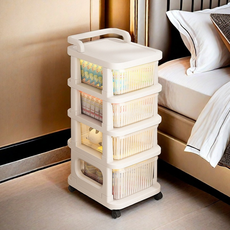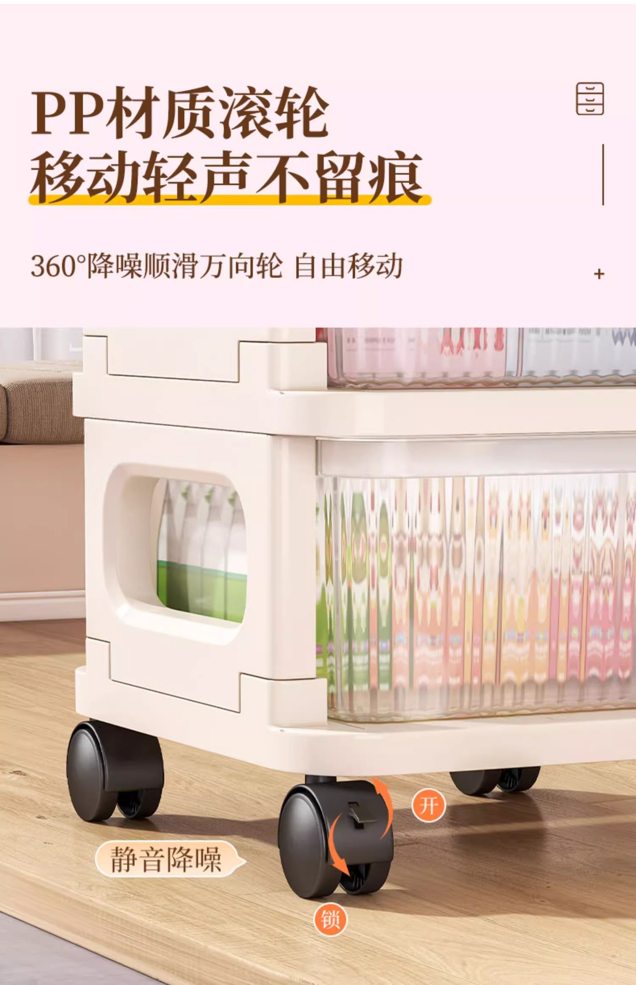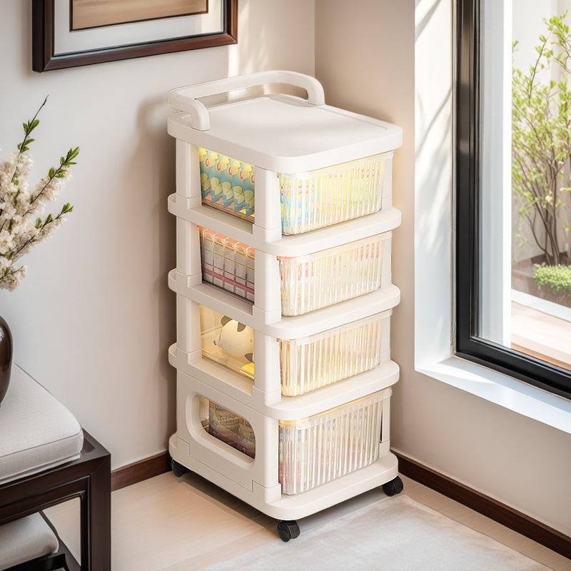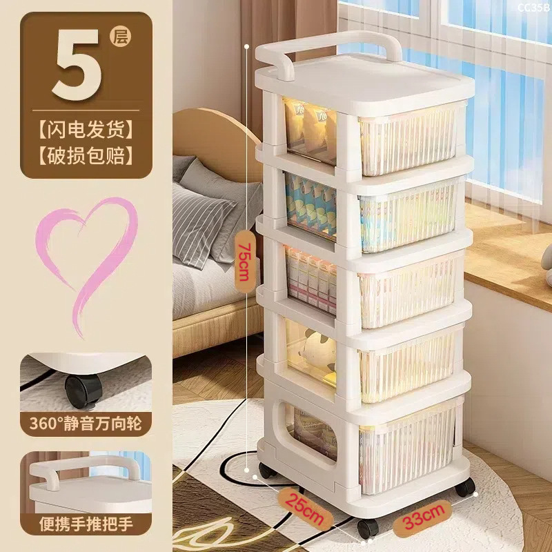 零食小推车可移动家用落地奶油风置物架婴儿用品收纳架玩具储物架