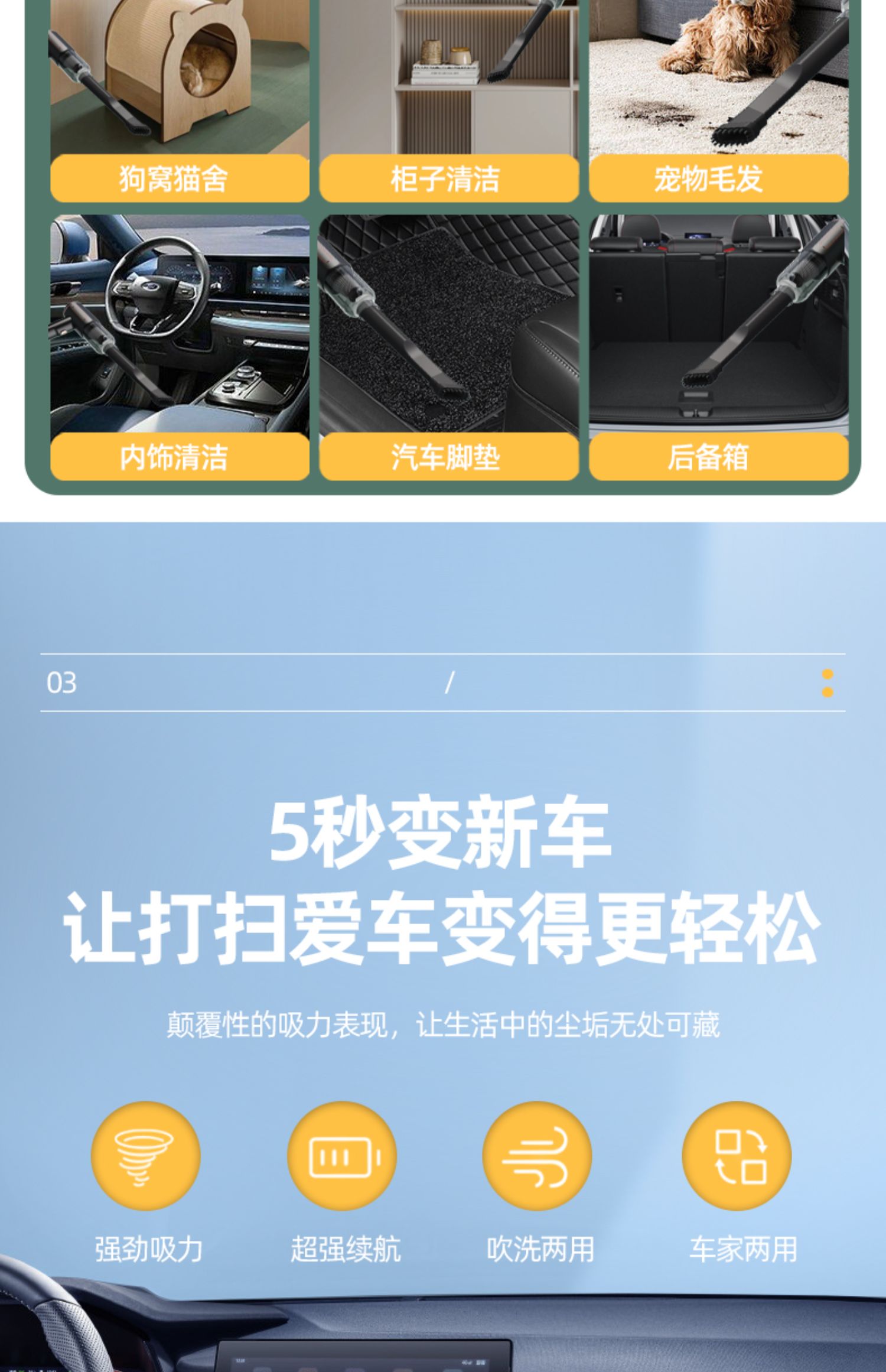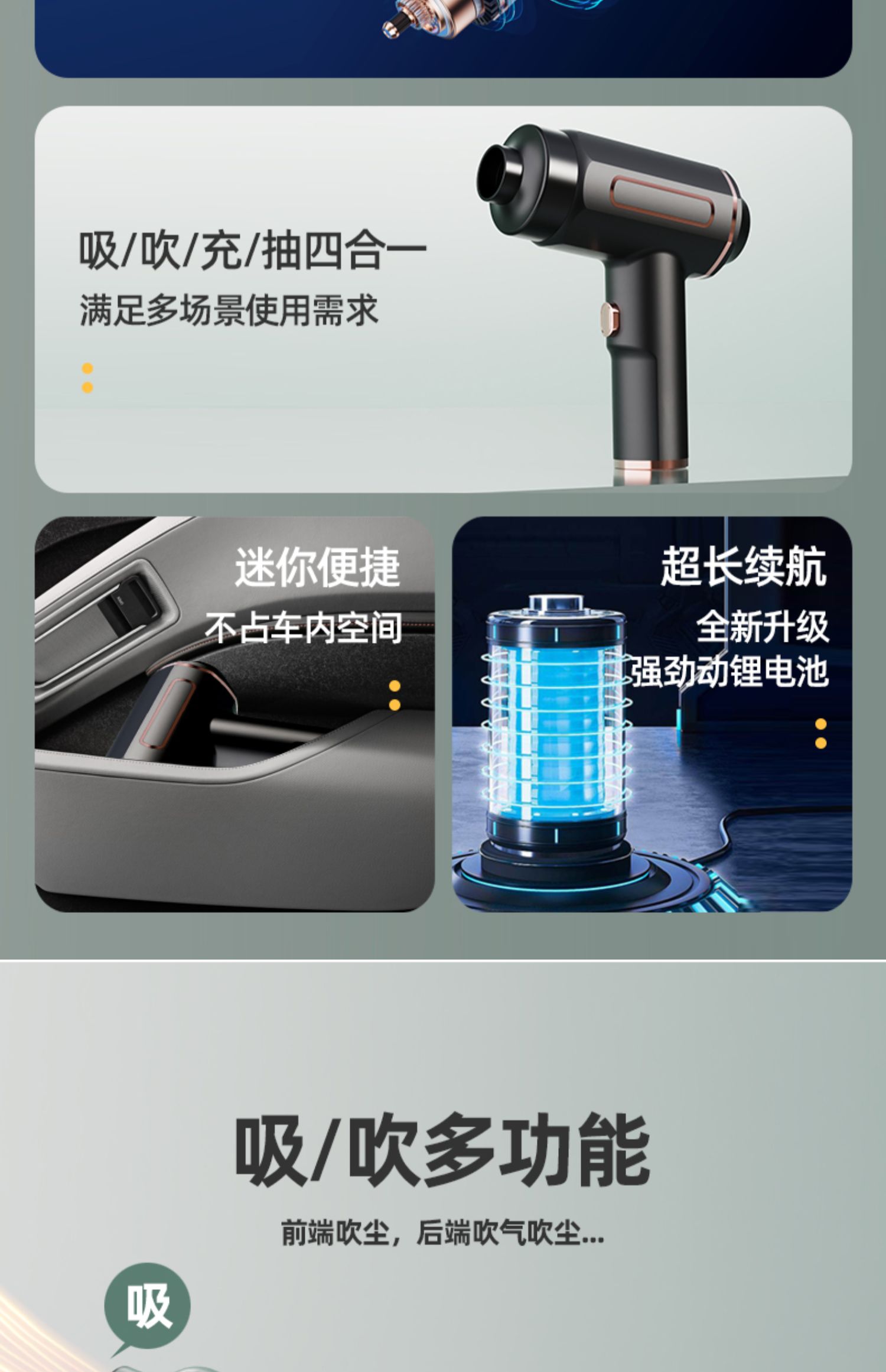 자동차 진공 청소기 자동차 휴대용 대형 흡입 무선 충전 가정용 자동차 인테리어 미니 진공 청소기