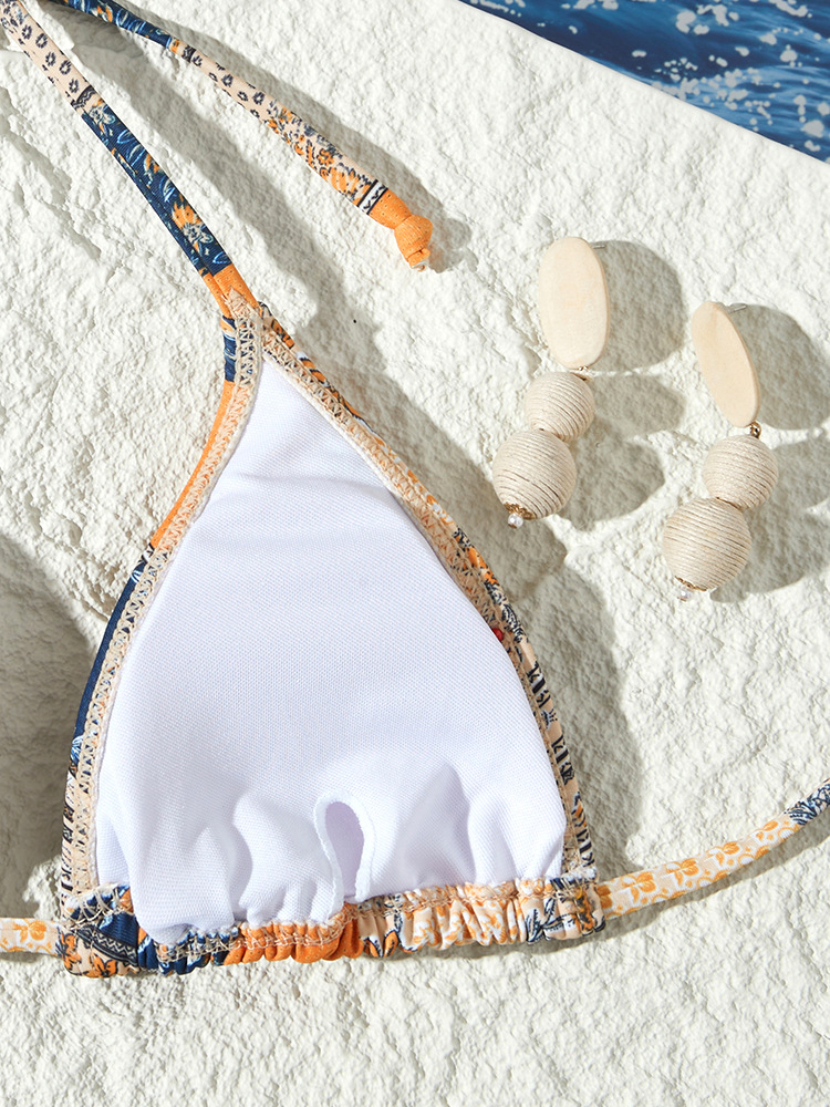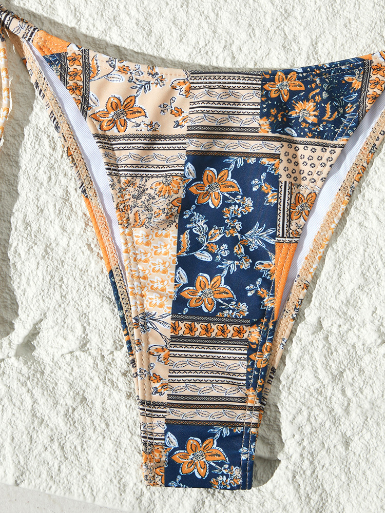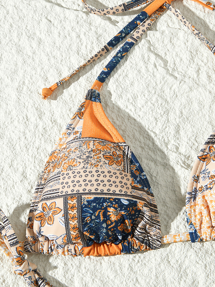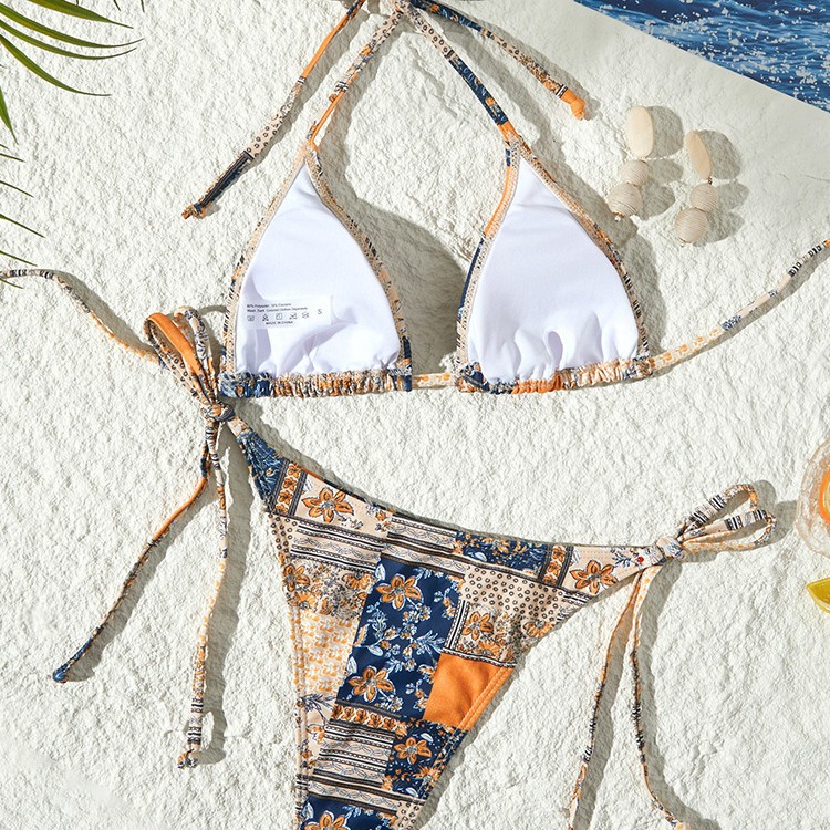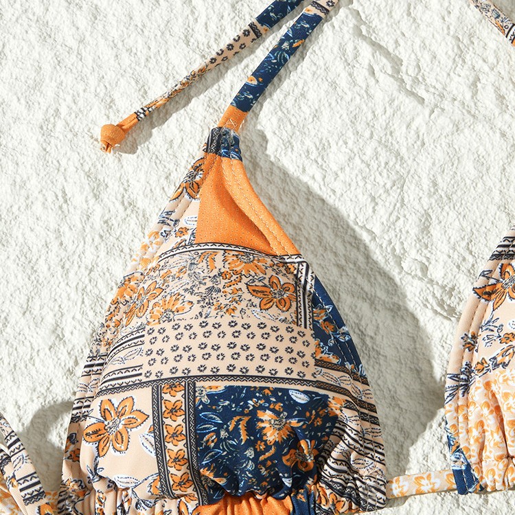 새로운 스타일의 스플릿 수영복 크로스보더 유럽과 미국의 인기 비키니 꽃무늬 레이스 업 섹시한 비키니 스플릿 수영복 수영복