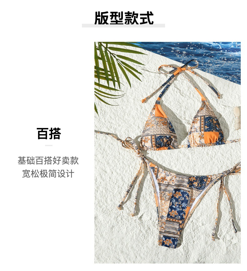 새로운 스타일의 스플릿 수영복 크로스보더 유럽과 미국의 인기 비키니 꽃무늬 레이스 업 섹시한 비키니 스플릿 수영복 수영복스토어 가기
