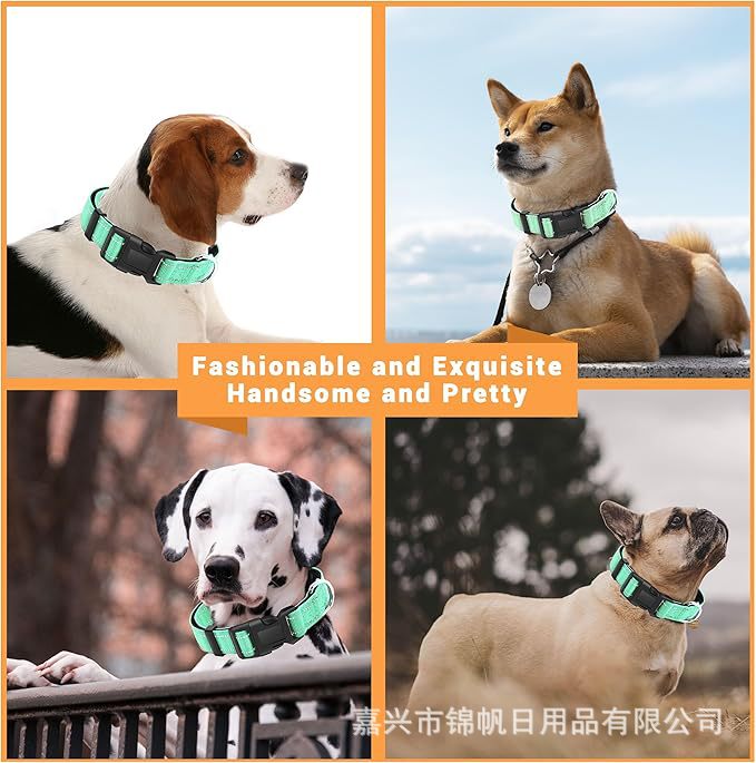 공장 애완 동물 칼라 개 목걸이 세트 조절 가능한 반사 나일론 웨빙 개 칼라 세트스토어 가기