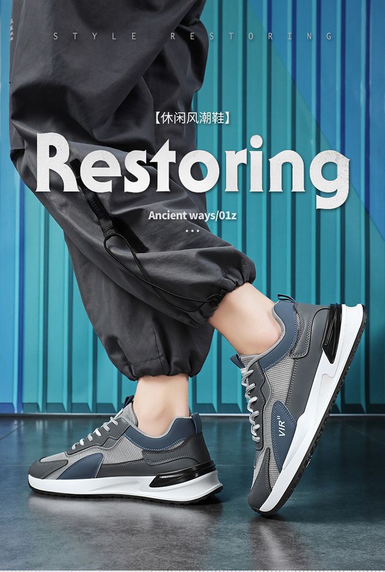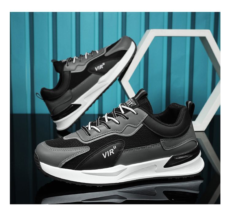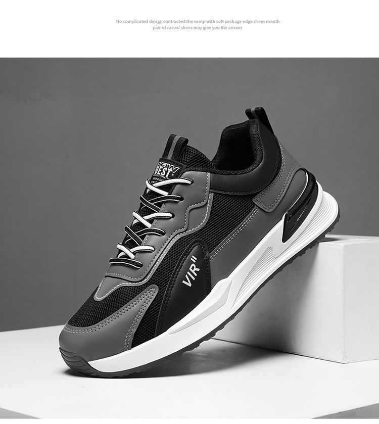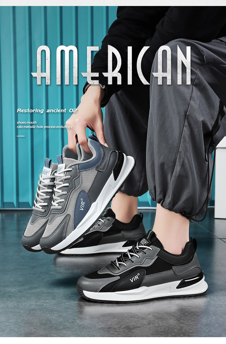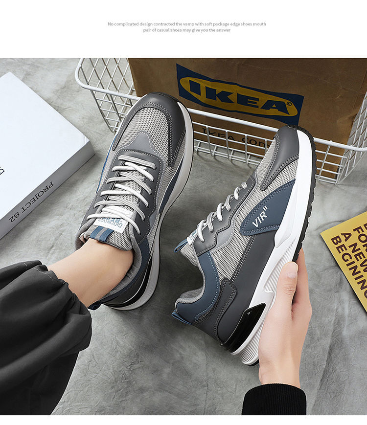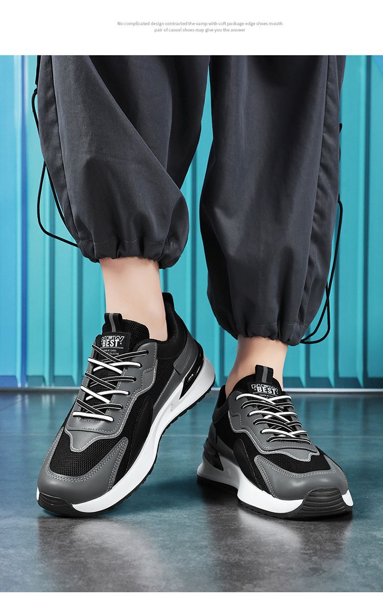 새로운 남성 신발 봄 스포츠 컬러 매칭 패션 두꺼운 하단 경량 달리기 신발 야외 트렌디 메쉬 가죽 스티칭 캐주얼 신발