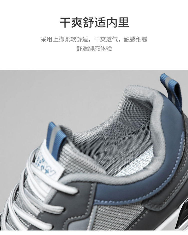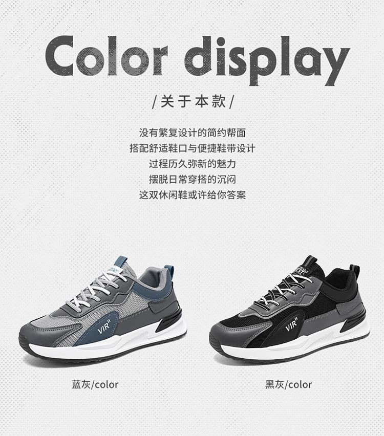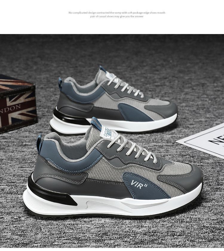 새로운 남성 신발 봄 스포츠 컬러 매칭 패션 두꺼운 하단 경량 달리기 신발 야외 트렌디 메쉬 가죽 스티칭 캐주얼 신발스토어 가기