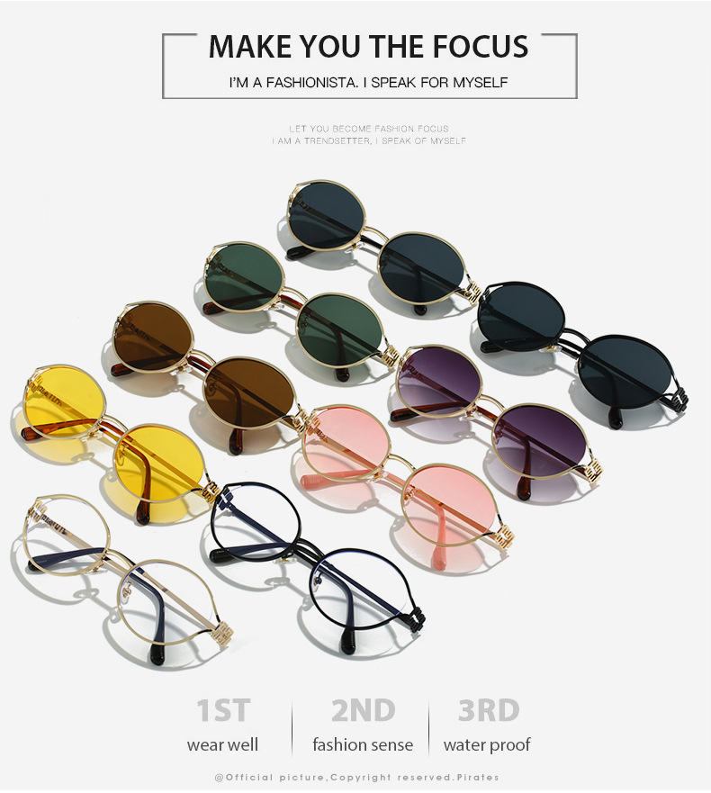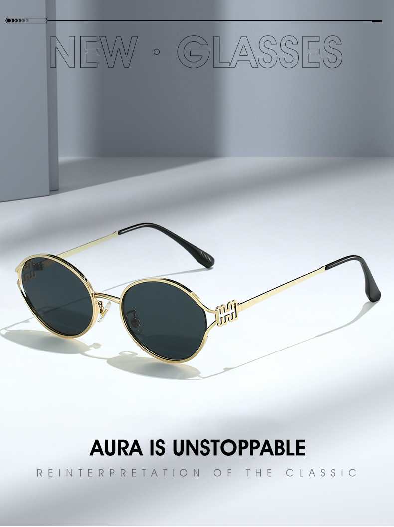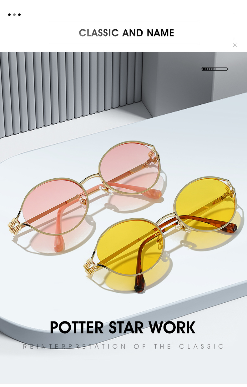 25 새로운 국경 라운드 프레임 금속 선글라스 여성 패션 하이 센스 안티 블루 라이트 선글라스 라운드 프레임 성격스토어 가기