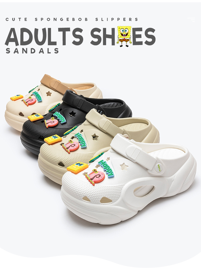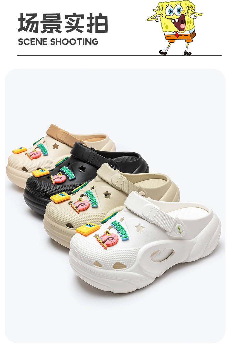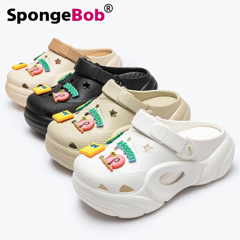 스폰지밥 두꺼운 밑창 여성용 나막신 새로운 미끄럼 방지 해변 강화 발가락 샌들 슬리퍼 여성용 여름 아우터웨어스토어 가기